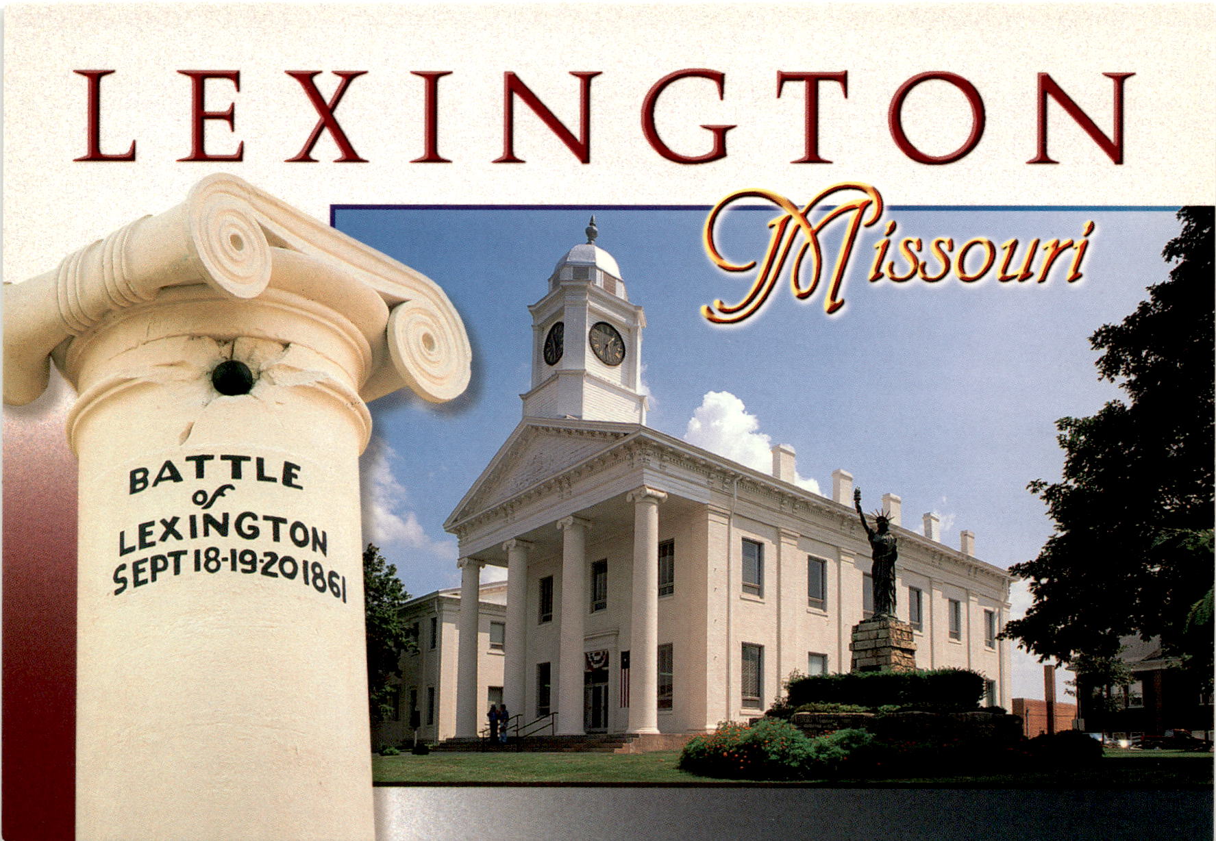 This postcard depicts the Battle of Lexington that took place on September 18-19, 1861 in Lexington, Missouri. The Missouri State Guard troops were victorious over the Union troops and captured the Missouri River port of Lexington. Visitors to this historic site can learn more about this significant Civil War battle. The postcard features photos taken by Steve Gibson and is distributed by Smith-Southwestern, Inc.
