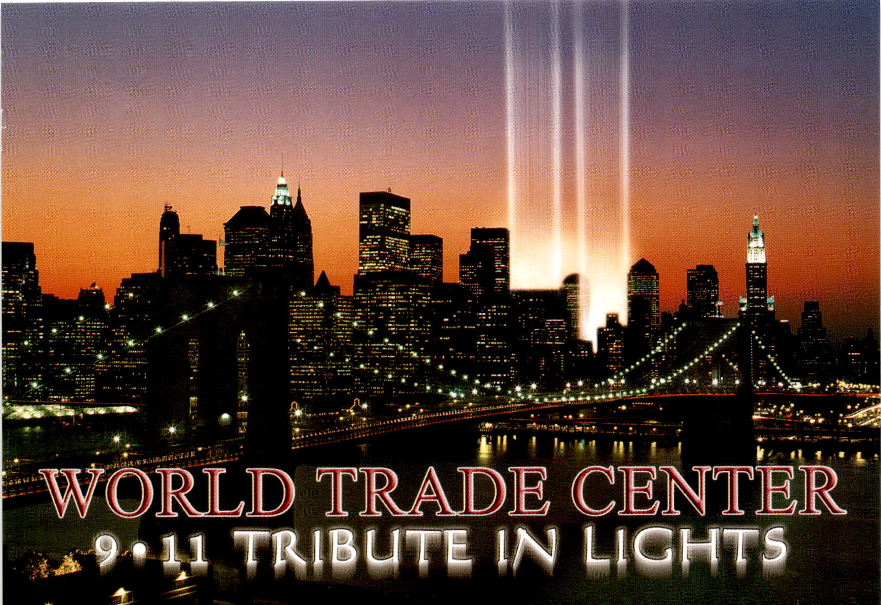 This postcard is a tribute to the heroes and victims of the 9/11 attack on the World Trade Center. It features the iconic Tribute in Lights memorial. The postcard expresses gratitude to the heroes and promises to always remember those who were lost. It is produced by Alfred Mainzer, Inc. and printed in Thailand. The contact information for Alfred Mainzer, Inc. is provided.