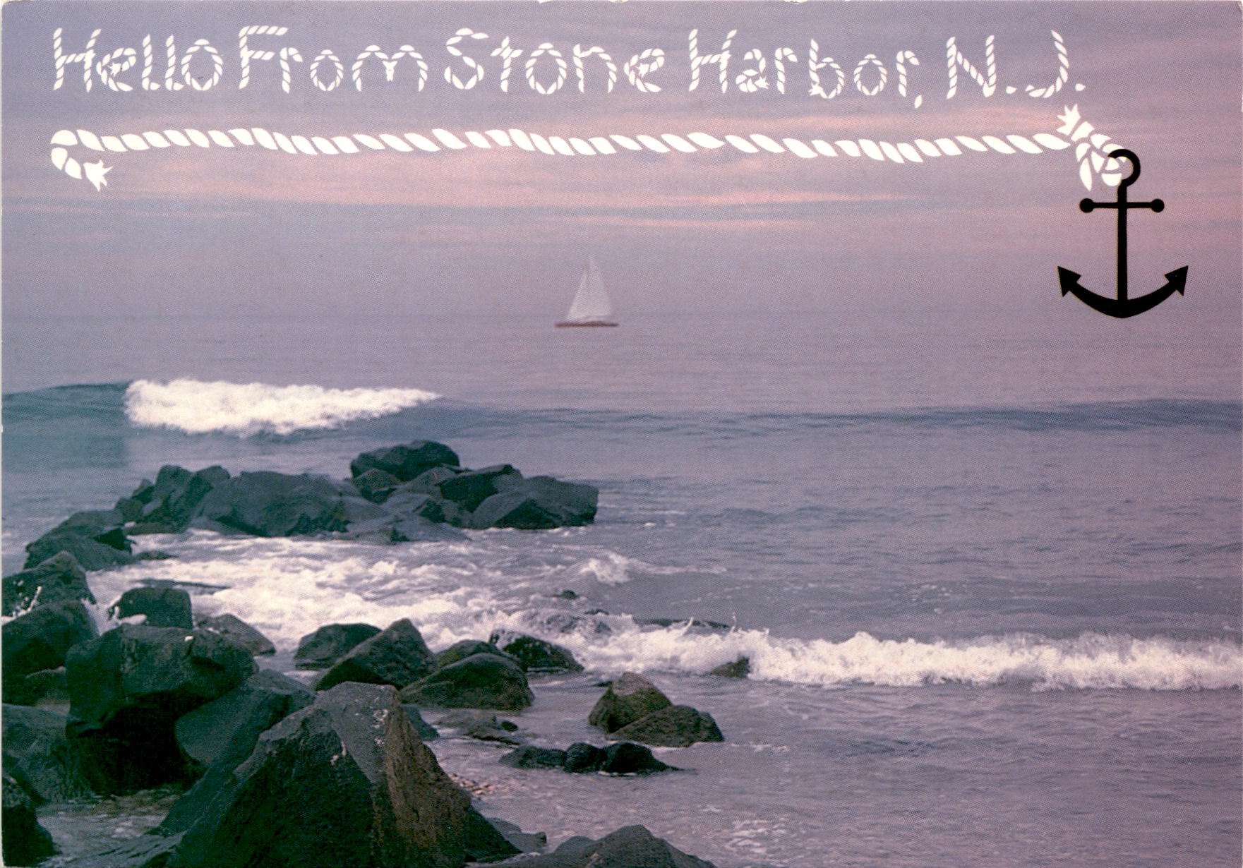 This postcard features a beautiful scene of the surf crashing upon the rocks, with a majestic sailing ship gliding by. The photo was taken by Dick Leonard and the postcard is from Freeman Post Cards in Longport, NJ. The address space is reserved for the U.S. Postal Service. The postcard is numbered 91657 41741 9 and has the code 27336.