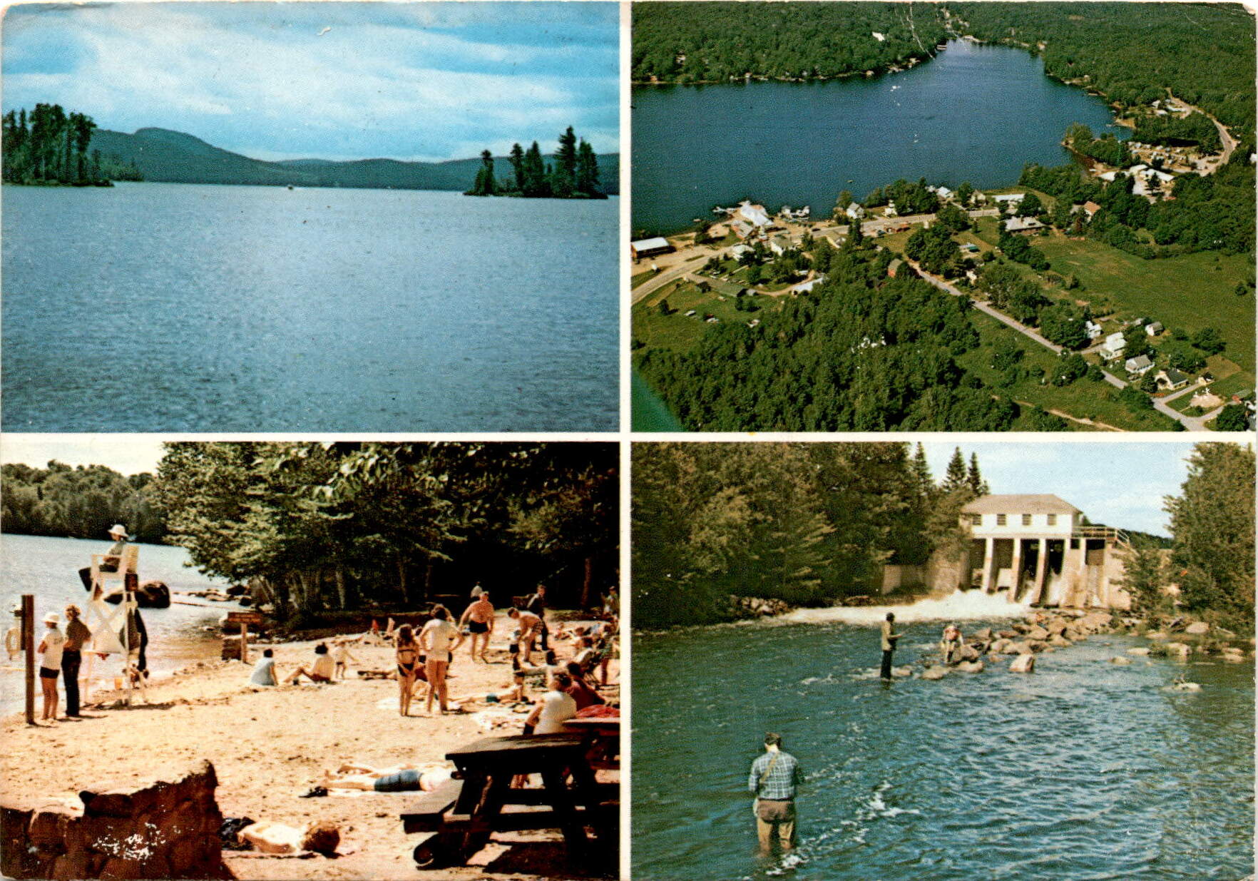 Back of PostcardCranberry Lake, located in the heart of the Adirondack Mountains, is a popular recreation resort. Visitors can enjoy staying in housekeeping cottages, motels, or hotels, and there are also marinas, restaurants, gift shops, and stores available. Outdoor activities include hiking, water skiing, and fishing for small mouth bass and trout. Hunting is also available during the appropriate season. The Cranberry Lake Chamber of Commerce promotes the area, and the postcard features photos taken by Dwight Church from Canton, N.Y.