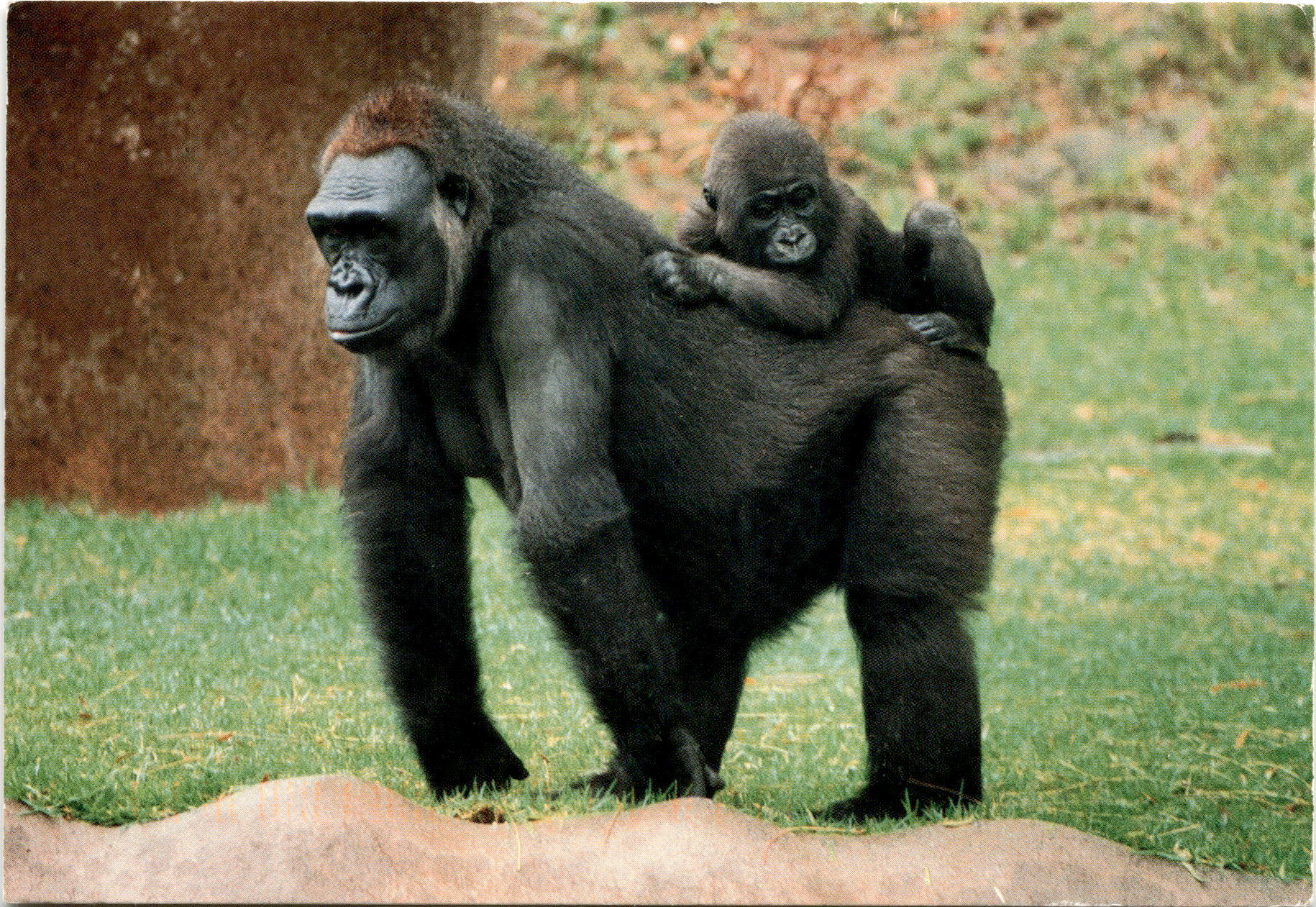 Back of PostcardThe text is a personal message from someone named Diego, who is writing to their mother. Diego mentions that their time in San Diego went well and they had a great time visiting the zoo, going deep sea fishing, and exploring the city. Diego also mentions that they will be participating in a triathlon soon. The text ends with a mention of a gorilla and the addresses of the San Diego Zoo and Wild Animal Park. The focus of the vintage postcard is likely on the San Diego Zoo and the animals found there.