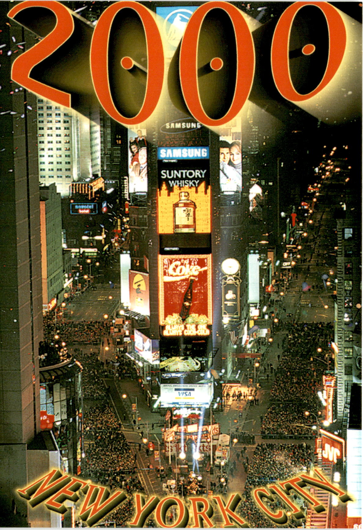 Back of PostcardThis postcard features a design by Lana Schob Design Group and includes a photo of New Year’s Eve in Times Square. The card is produced by Alfred Mainzer, Inc. and printed in Thailand. The card also includes the logos of Samsung, Suntory Whisky, Visa, and JVC M4207. The Prudential Insurance Company of America and Brude Wodder Photography are credited for the photo on the card. The contact information for Alfred Mainzer, Inc. is provided as well.