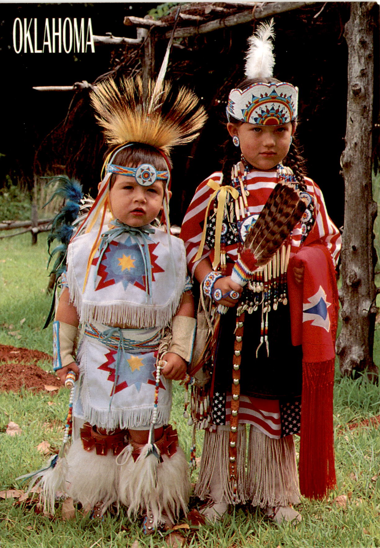 This postcard features a photo by John Southern showcasing Oklahoma Native Americans. It captures the hopes and dreams of these individuals, which are carried into the future by their children. The postcard is produced by Prairie Production Company and can be found at their location in Tulsa, Oklahoma.