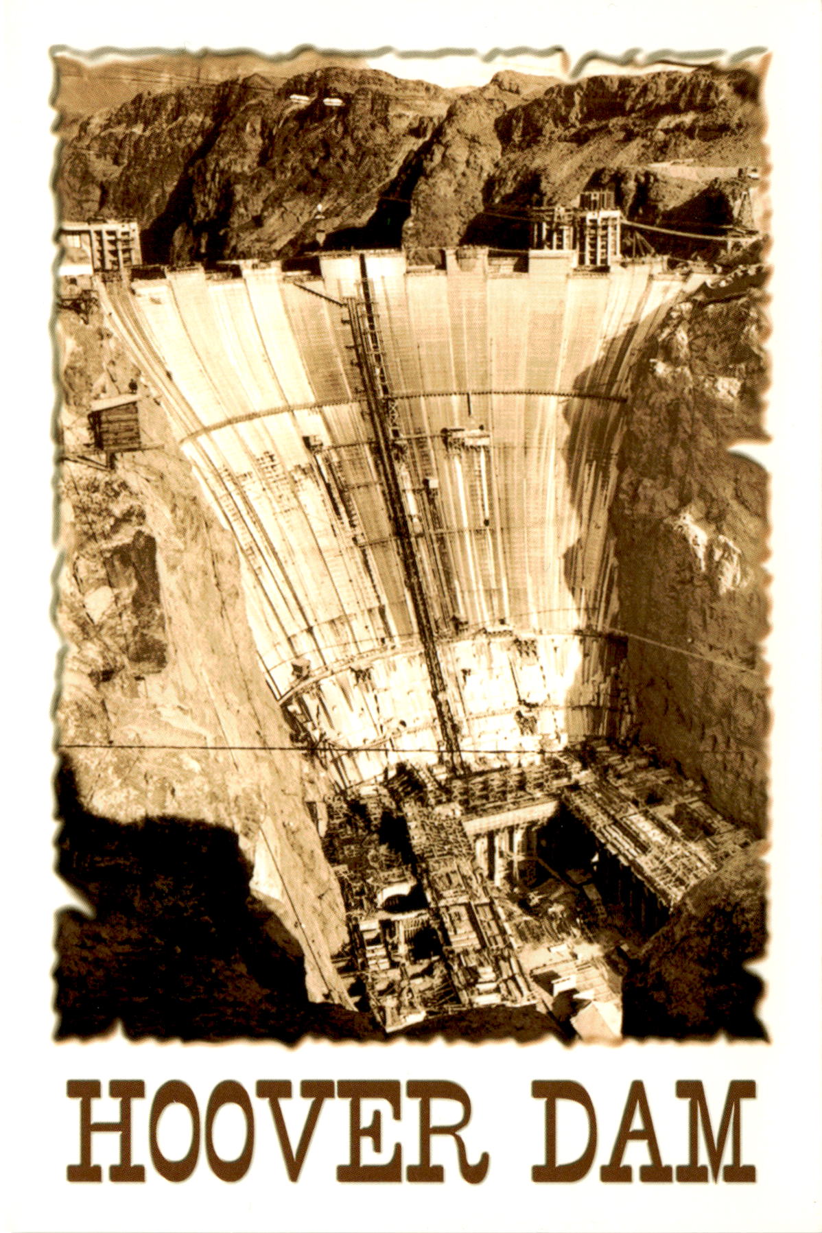 Back of PostcardThis postcard features a photo of the Hoover Dam, which was the largest dam project in the world when it started in 1931. The project cost nearly $49 million and employed over 5000 people working in shifts around the clock. The postcard is produced by Mostly Postcard Inc. and includes their address in Scottsdale, Arizona. The photo on the postcard is courtesy of the Bureau of Reclamations and the date of the photo is January 2, 1935.