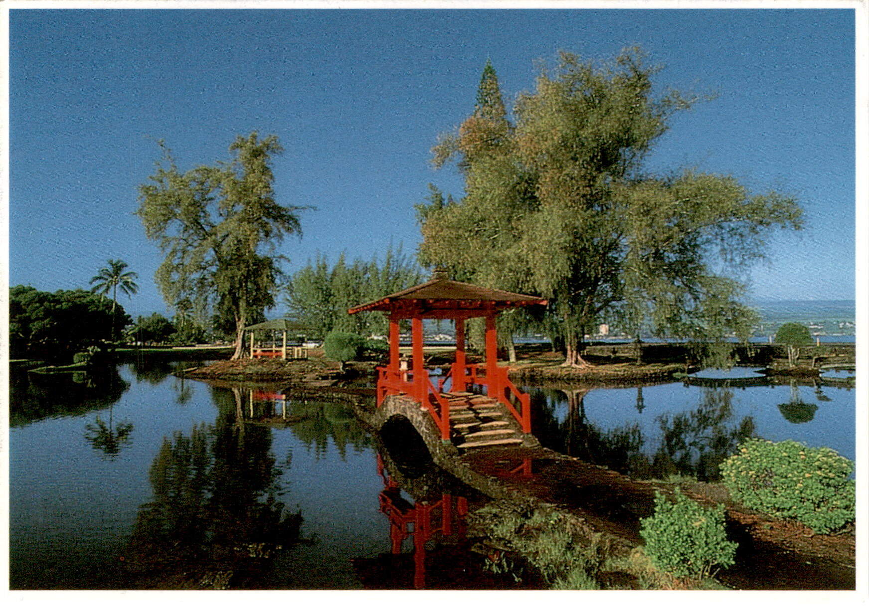 Postcard featuring Liliuokalani Gardens in Hilo, Hawaii.