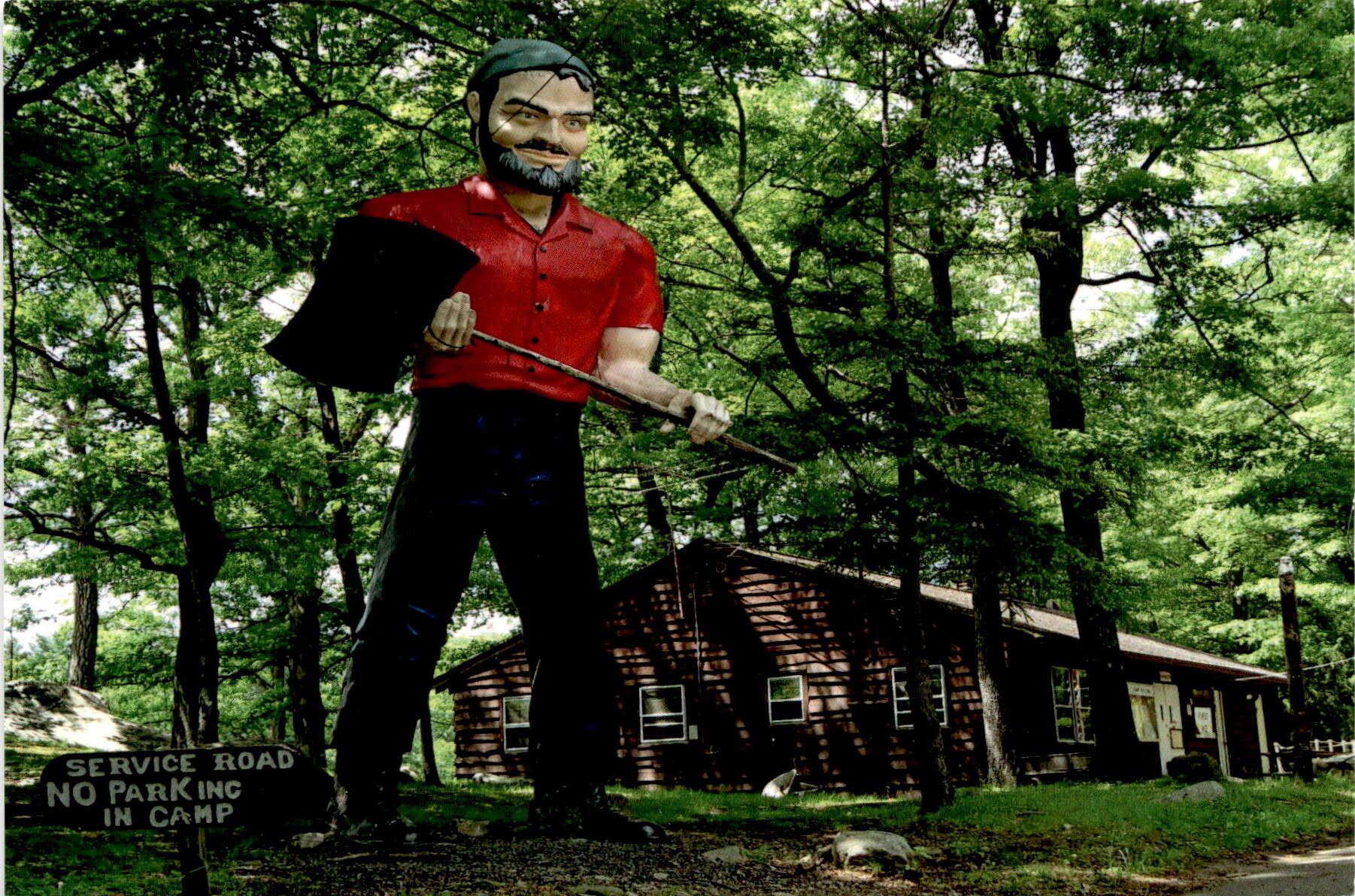 Postcard featuring Paul Bunyan Muffler Man at Camp Bullowa.