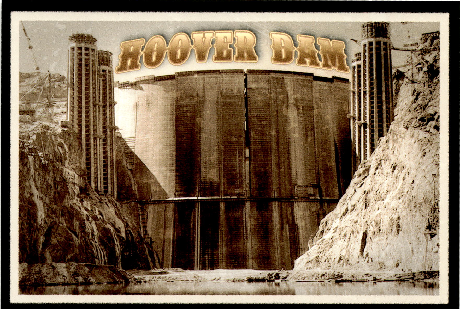 This postcard features a unique photo of Hoover Dam, showing the side of the dam that is now submerged under water. The photo is from January 8, 1935, and is courtesy of the Bureau of Reclamations. The dam project was a dangerous endeavor, resulting in the deaths of ninety-six workers. The postcard is produced by Mostly Postcards Inc. and includes their contact information. It is a standard-sized postcard and is not intended for writing below a certain line. The postcard was printed in Canada.