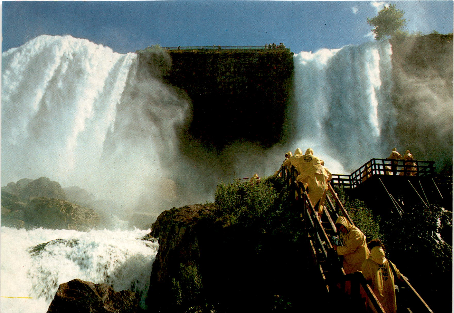 This postcard features a stunning view of the Bridal Veil Falls and Luna Island on the American side of Niagara Falls. The photo was taken by Werner J. Bertsch and the postcard is exclusively distributed by HOST INTERNATIONAL INC. It is made by KINA ITALIA and the address for distribution is in Niagara Falls, New York.