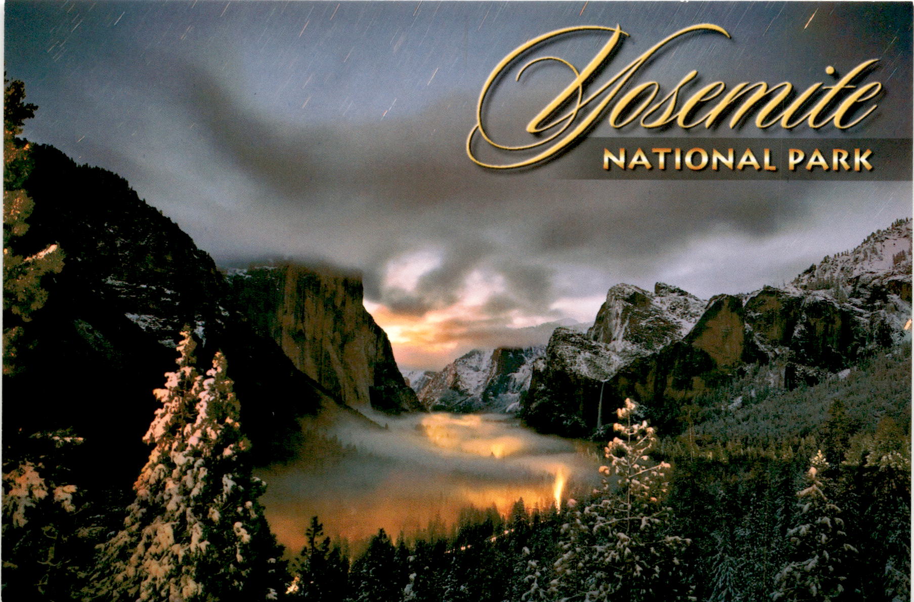 This postcard features a stunning photo of Yosemite Valley in Yosemite National Park, California. The photo captures the majestic El Capitan, the world’s largest monolith of exposed granite, towering over 3,600 feet above the valley floor. On the right side, Bridalveil Fall can be seen dropping over 600 feet into Yosemite Valley’s Merced River. The photo was taken about an hour after sunset, resulting in a beautiful and serene atmosphere. The postcard is printed on high-quality photo paper and is made in the USA. It is published by Scope Enterprises and can be purchased online.