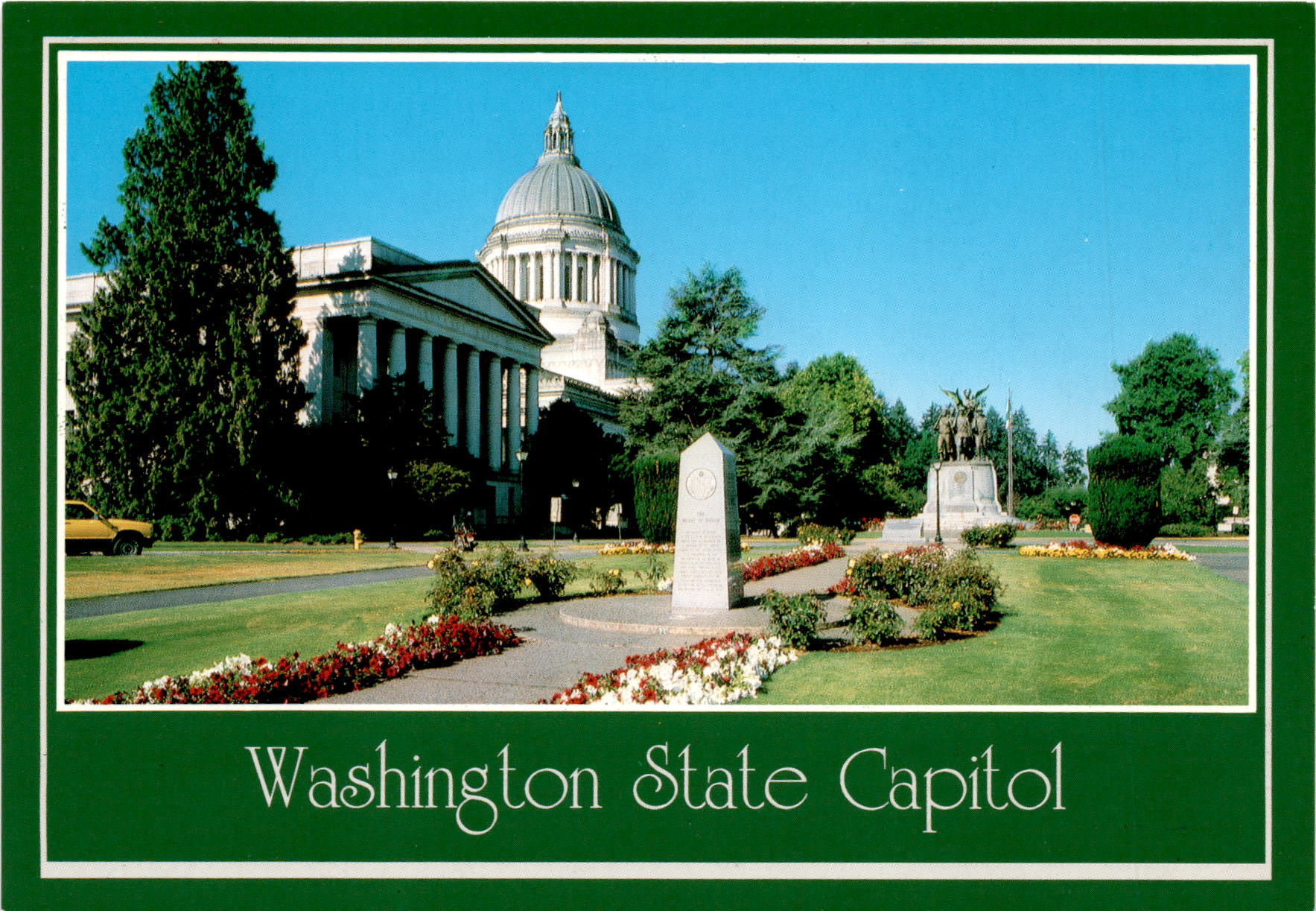 This postcard features a stunning view of the Washington State Capitol building in Olympia, Washington. The highlight of the grounds is the beautiful flower gardens, which are a must-see for tourists. The postcard also showcases various monuments, including the prominent Medal of Honor. The artwork is done by James Blank, and the postcard is made in Italy by KINA ITALIA in Milan. It is distributed by Smith-Western Co. in Tacoma, Washington.