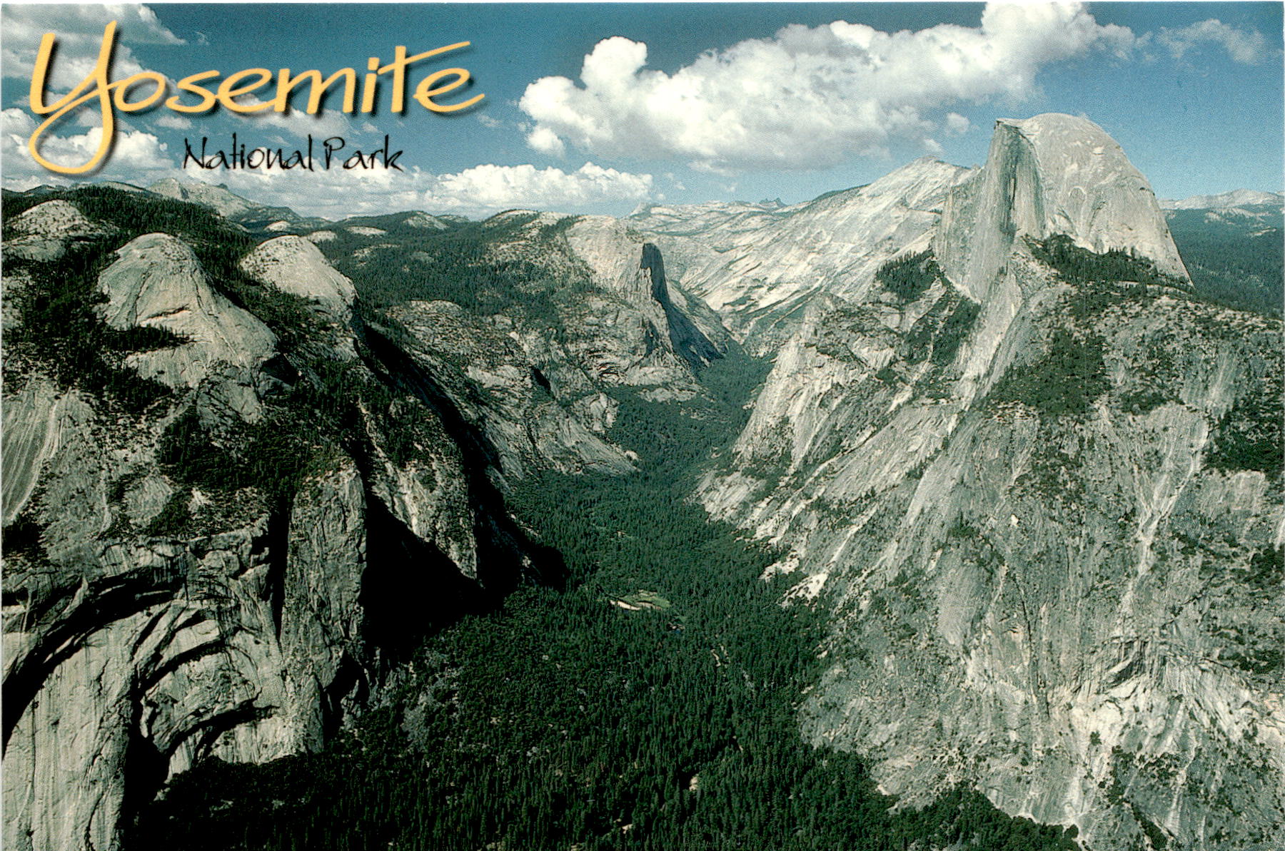 This postcard features a stunning view from Glacier Point in Yosemite National Park, California. The view showcases the High Sierra, Half Dome, and Yosemite Valley. The photograph was taken by Arnold and Carole Compolongo. The postcard is part of the COLORSCOPEⓇ photo prints collection and is made in the USA. It is published by SCOPE ENTERPRISES and can be purchased online.