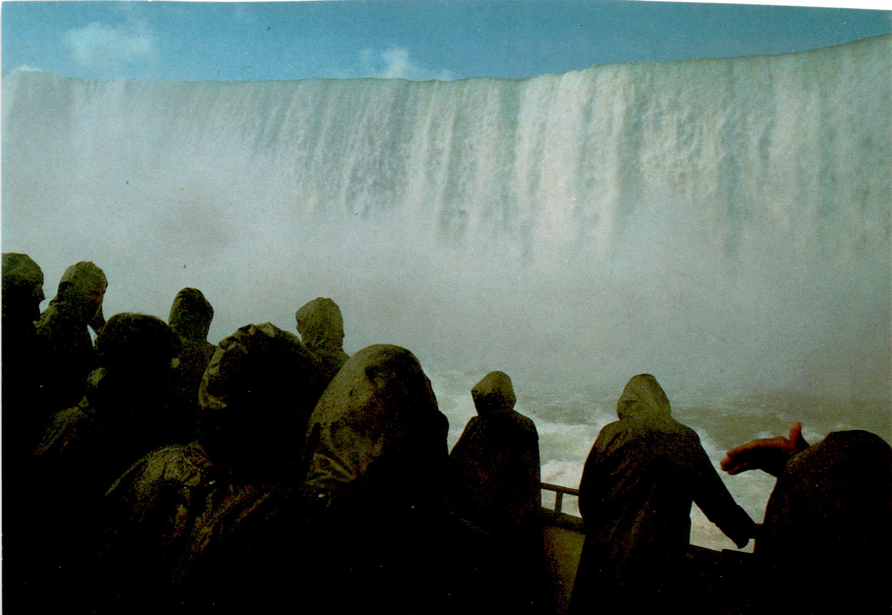 The Maid of the Mist is a popular attraction in Niagara Falls, New York. It is a small boat that takes visitors to the base of both the Canadian and American Falls. This experience is considered the highlight of a trip to Niagara Falls. The postcard features a photo by Werner J. Bertsch and is distributed exclusively by HOST INTERNATIONAL INC. The postcard is made by KINA ITALIA.