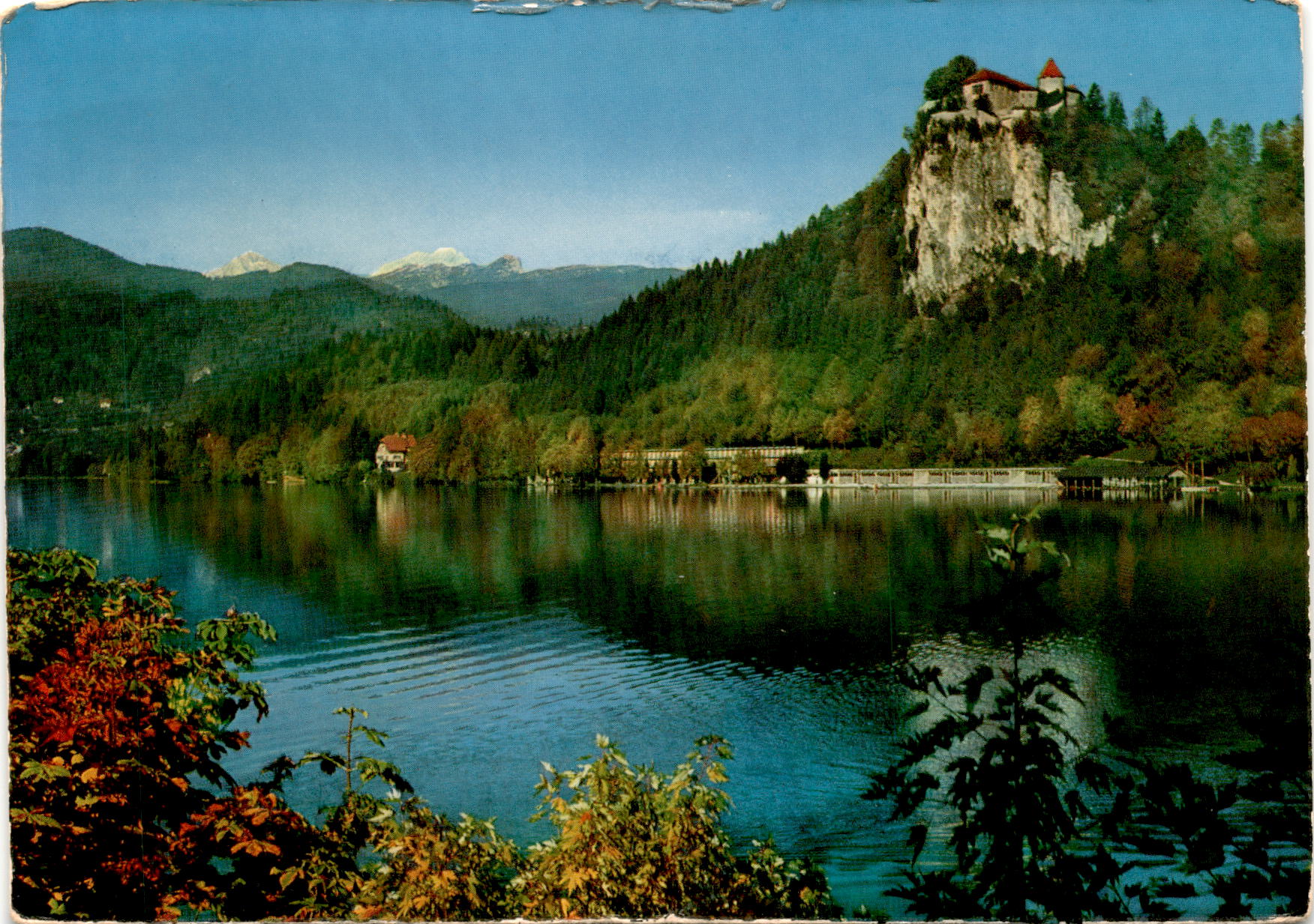 The postcard describes a visit to Bled, Yugoslavia, where the writer had dinner at the castle pictured on the postcard. They enjoyed a Chateaubriand for two and half a liter of wine for about $4.00. Bled is known for hosting the World Rowing Championship. The writer plans to visit Dubrovnik and Athens next. The postcard provides insight into the social and cultural activities of the writer, showcasing their interest in exploring new places and trying local cuisine. The postcard also highlights the beauty and historical significance of Bled, making it a valuable destination for travelers and postcard collectors alike.