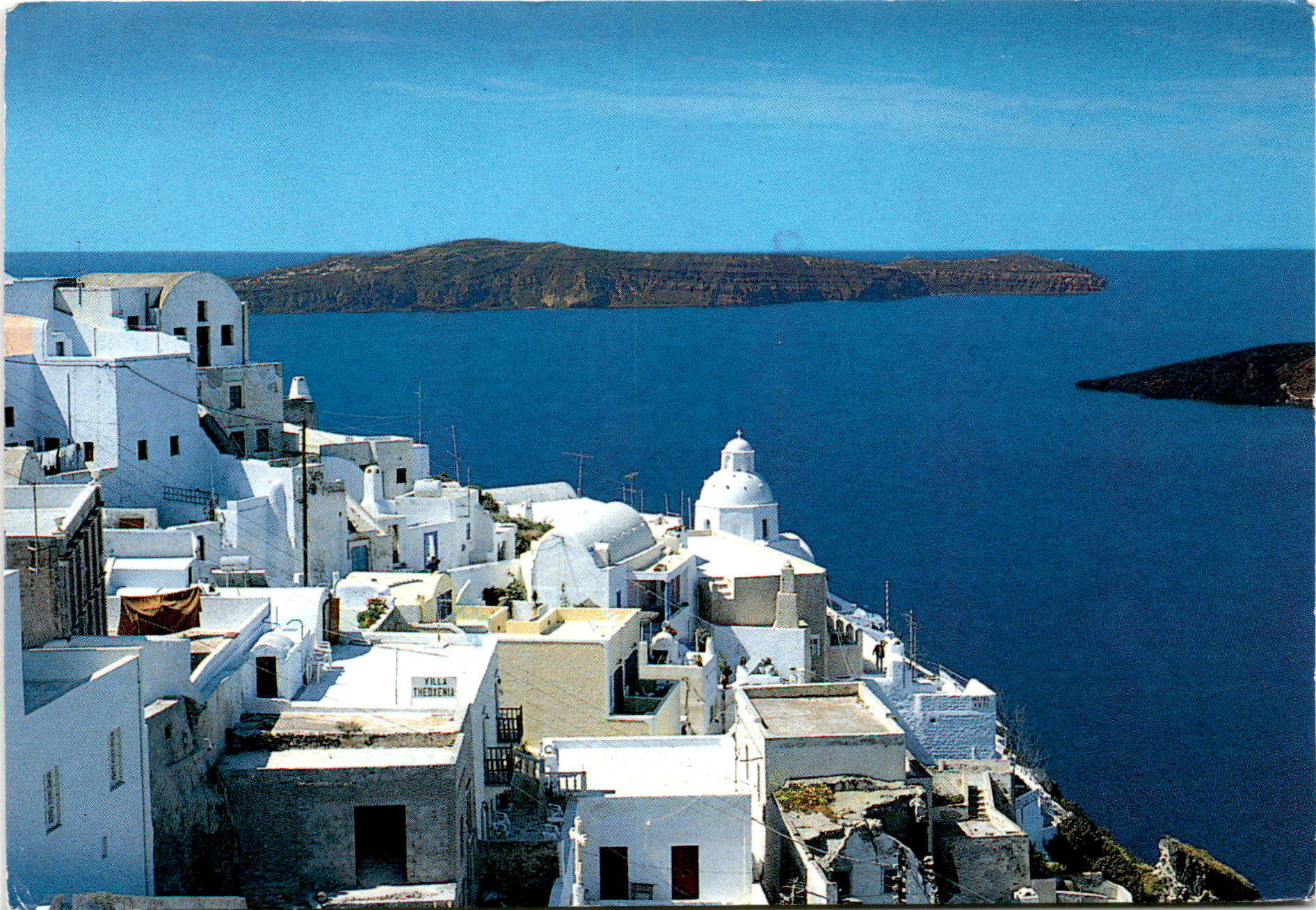 The postcard describes a trip to Greece, specifically Athens and Santorini. The writer mentions the elegant Grande Bretagne hotel in Athens and the beautiful weather. They also talk about the delicious food and the comfortable accommodations on the ship. The postcard is addressed to Lane, Dad, and Mom in Boston, Massachusetts, and the writer expresses their love for postcard collecting. The postcard captures the cultural and social value of traveling to historic and picturesque locations in Greece, highlighting the importance of experiencing different cultures and sharing those experiences with loved ones through postcards.