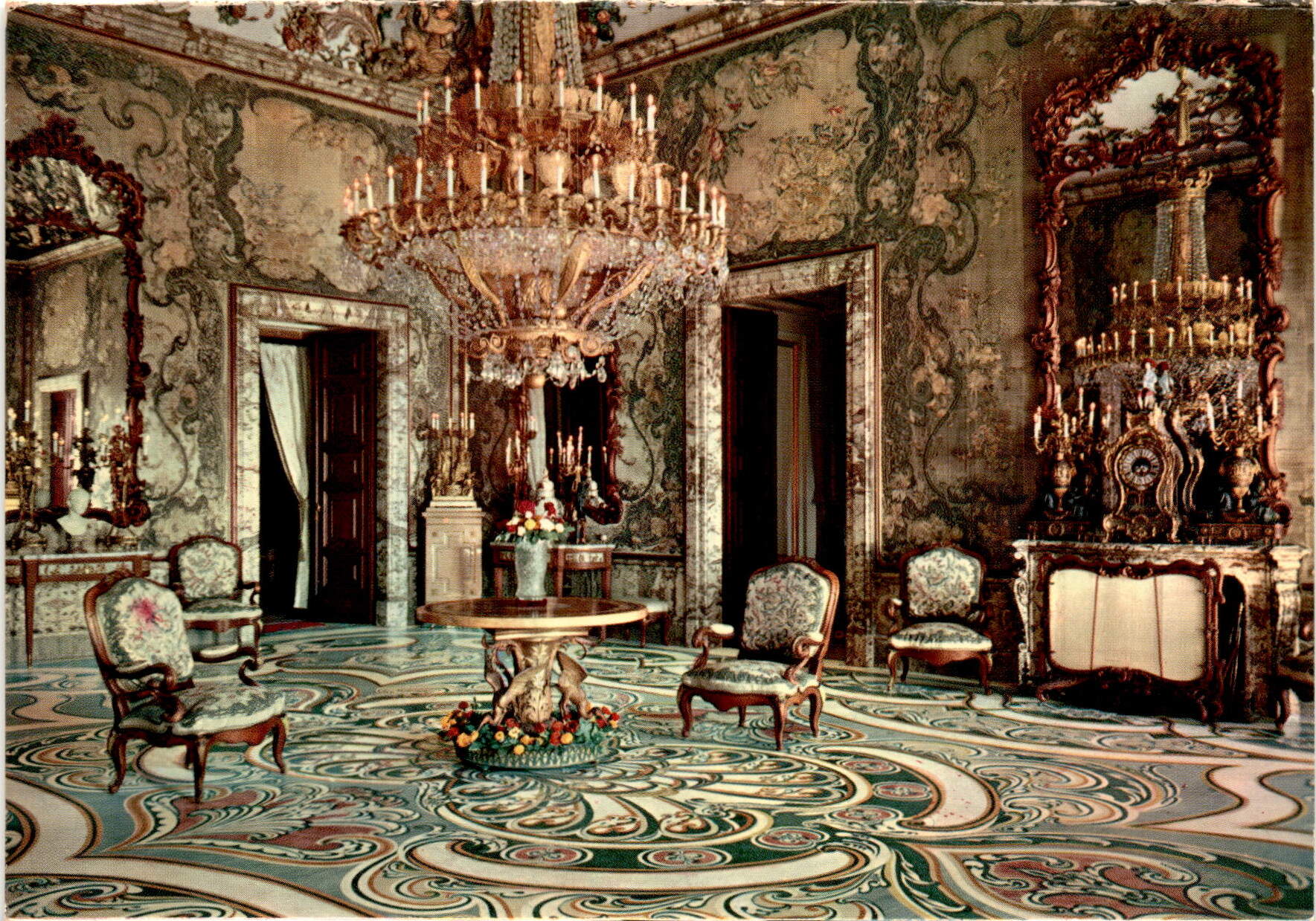 The postcard depicts Gasparini’s Hall in the Royal Palace of Madrid, a place of historical and cultural significance. The image captures the grandeur and elegance of the hall, showcasing its architectural beauty. The postcard is a representation of the rich cultural heritage of Spain, highlighting the importance of preserving and celebrating its national heritage. The text on the postcard emphasizes the prohibition of reproduction, indicating the value placed on protecting and maintaining the historical integrity of the Royal Palace. The mention of the editorial PATRIMONIO NACIONAL further underscores the importance of national heritage and the significance of the Royal Palace in Spanish history. Overall, the postcard serves as a visual reminder of the social and cultural value of iconic landmarks like Gasparini’s Hall in the Royal Palace of Madrid.