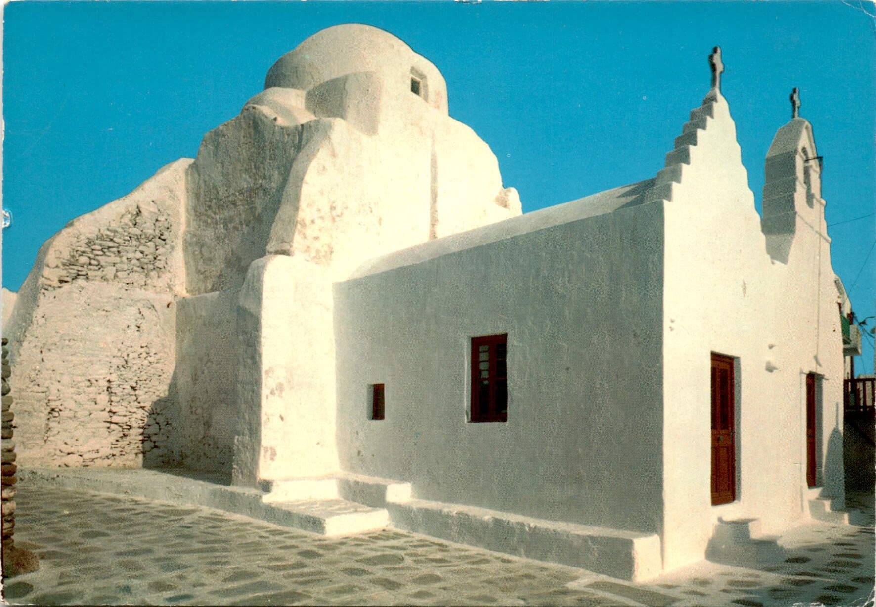 The postcard features the iconic Sainte-Mavri Paraportiani church in Mykonos, a symbol of the island’s cultural and historical significance. The church is a popular tourist attraction and holds great social value for the local community. The image captures the unique architecture and beauty of the church, showcasing the blend of traditional and modern elements. Mykonos is known for its vibrant nightlife and picturesque beaches, making it a sought-after destination for travelers seeking both relaxation and entertainment. The postcard serves as a reminder of the rich cultural heritage of Mykonos and the importance of preserving its historical landmarks. It is a representation of the island’s charm and allure, attracting visitors from around the world to experience its beauty firsthand.