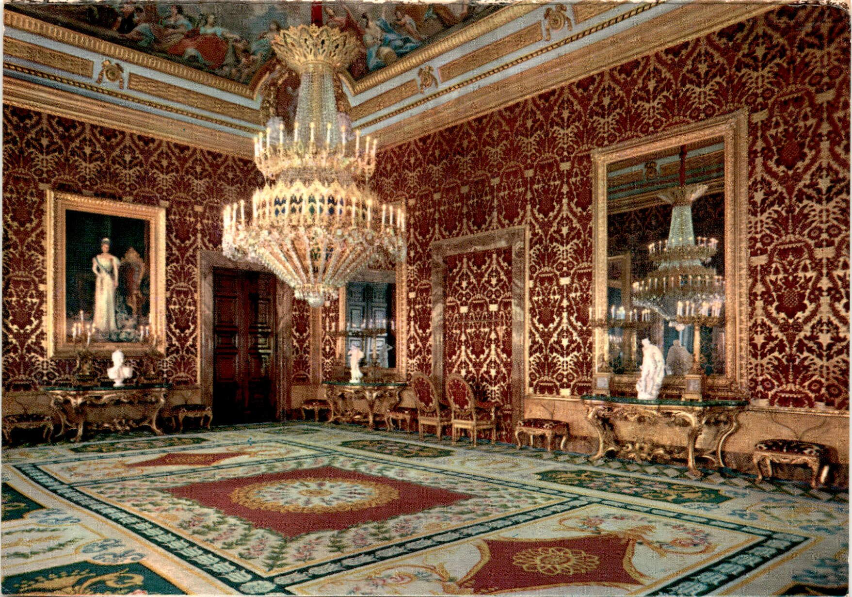 This postcard features a stunning image of the Royal Palace in Madrid, specifically the Official Chamber. The palace holds significant cultural and historical value as a symbol of Spain’s monarchy and architectural heritage. The Official Chamber is where important ceremonies and events take place, showcasing the country’s rich traditions and customs. The postcard is published by Editorial PATRIMONIO NACIONAL, emphasizing the importance of preserving and promoting Spain’s national heritage. The photo is credited to GarcĂa Garrabella y Cia, highlighting the skilled craftsmanship and artistry involved in capturing the beauty of the palace. Overall, this postcard serves as a valuable memento for collectors interested in preserving and celebrating the social and cultural significance of iconic landmarks like the Royal Palace in Madrid.