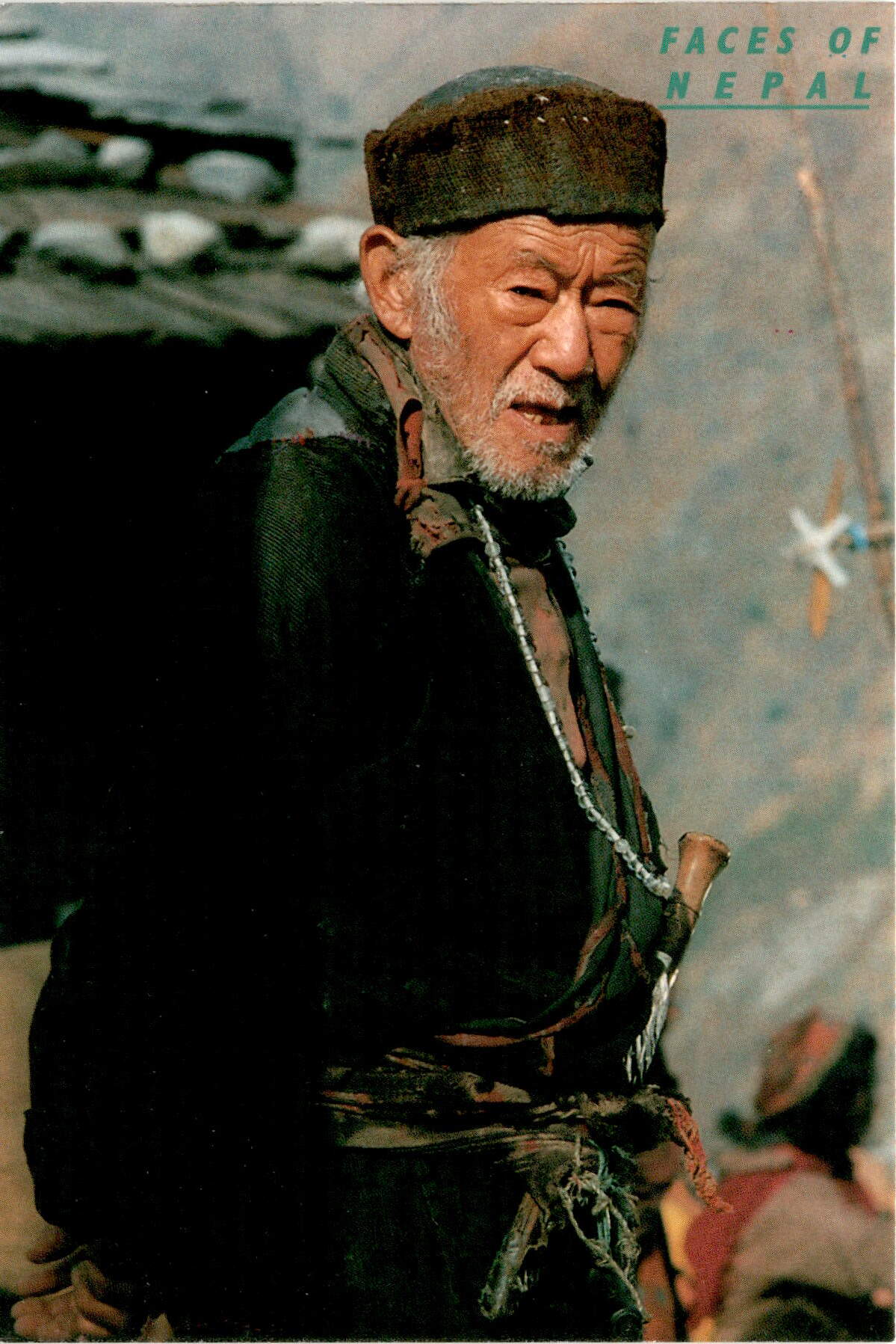 The postcard features a senior Limbu, who belongs to the Tibet-Burmese ethnicity, looking into the future with cynical eyes. This image captures the essence of cultural diversity and the complexities of human emotions. The photo, taken by N. Pradhan, reflects the rich heritage and traditions of Nepal. The postcard, with the ISBN 99933-23-82-9, holds social and cultural value as it showcases the unique features of the Limbu community and their perspective on life. It serves as a reminder of the importance of preserving and celebrating different ethnicities and their traditions. The postcard is a representation of the diverse faces of Nepal and the stories they hold.