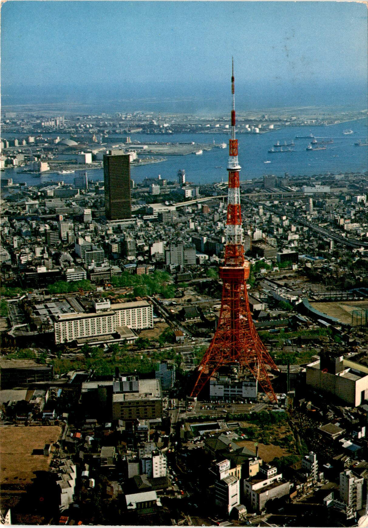 Back of PostcardThis postcard features a stunning view of Tokyo Tower and the World Trade Center Building facing southeast towards Tokyo Harbor. The image captures the beauty of Tokyo from above, with the World Trade Center Building in front of Tokyo Tower. The postcard also includes greetings and well wishes, indicating a new hotel called The Pacific. The cultural value of the postcard lies in its depiction of iconic landmarks in Tokyo and the inclusion of traditional Japanese greetings. The postcard was published by NBC (Nippon Beauty Card Center Inc.) and sent from Japan to the United States. Overall, the postcard serves as a cultural and social artifact, showcasing the beauty of Tokyo and the exchange of greetings between different countries.