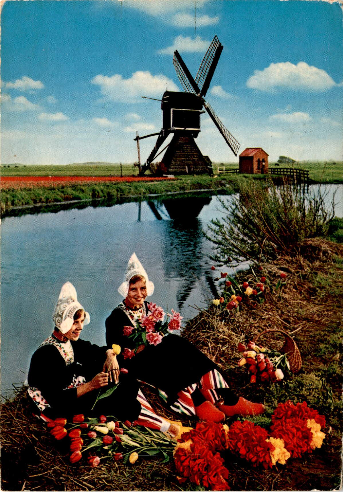 The postcard dated June 27, 1972, captures a day spent in various Dutch cities like Amsterdam, Volendam, The Hague, and Rotterdam. The writer marvels at the sight of water being higher than land and notes the traditional Dutch wooden shoes and clothing worn by many locals. The postcard highlights Holland as the Land of Flowers and Windmills and features cultural symbols like the Althomes and the Nieuwe Waterweg. The message on the postcard reflects on the world’s changes over the years and includes historical references like Thorbecke. The postcard, made in Western Germany, holds social and cultural value by showcasing Dutch traditions, landmarks, and the beauty of the Netherlands. It is addressed to Mr. & Mrs. Larry Zimmer in Toledo, Ohio, USA, indicating a connection between different cultures through postcard collecting.