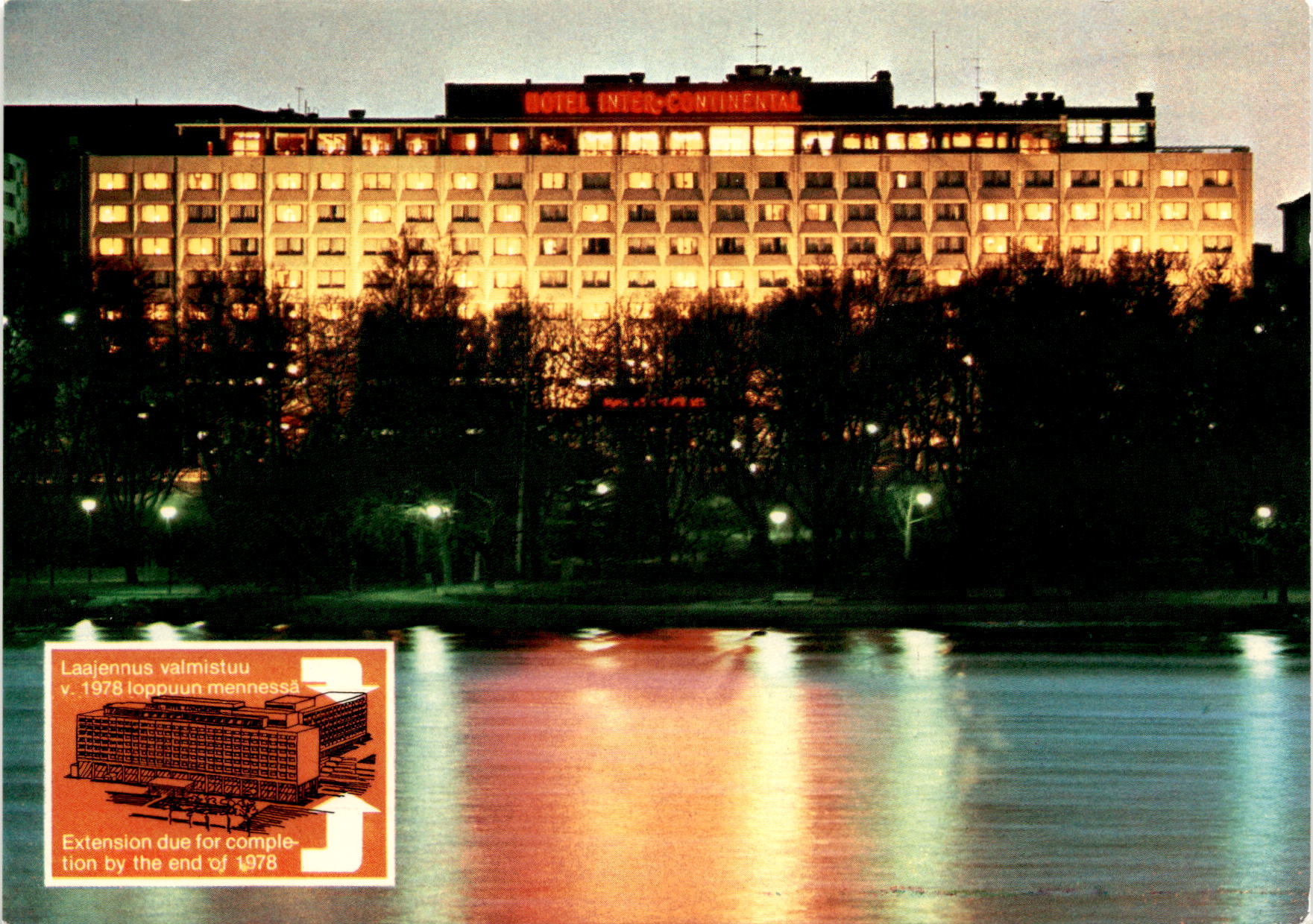 The postcard showcases the Hotel Inter-Continental in Helsinki, Finland, with an extension set to be completed by the end of 1978. The hotel’s location on Mannerheimintie 46 is highlighted, along with contact information for reservations. The postcard also features Varisuomi Oy, a company specializing in color image works, travel brochures, postcards, photography, design, and publishing. The postcard is printed in Finland and serves as a cultural and social artifact, reflecting the tourism industry and design trends of the time. It provides a glimpse into the architectural and hospitality landscape of Helsinki in the late 1970s, offering a valuable insight into the city’s history and development.