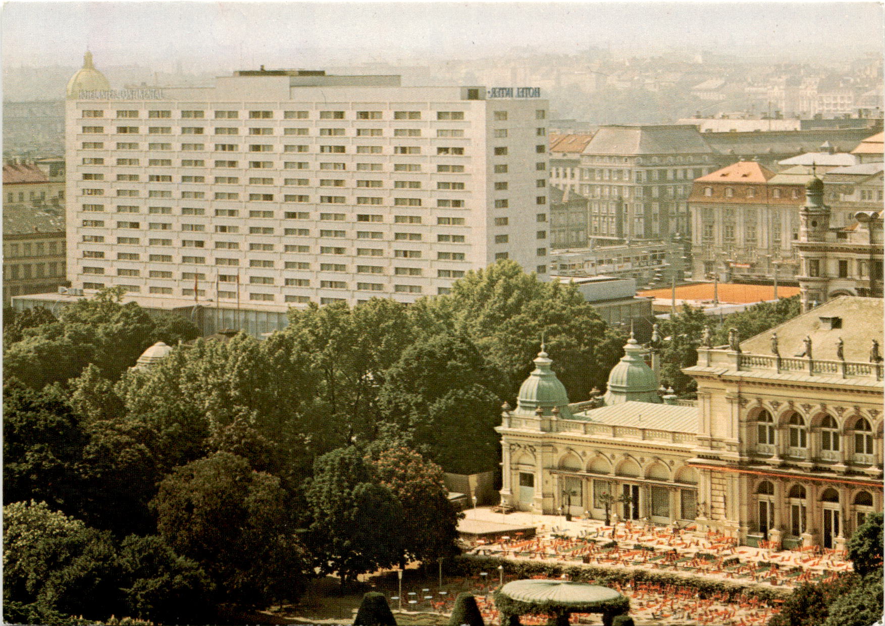 Back of PostcardThe postcard showcases the luxurious and culturally significant amenities of the Aren Hotel Inter Continental Vienna. Located in the heart of Vienna, the hotel offers a variety of dining options such as the Rotisserie and Brasserie, as well as the Intermezzo-Bar for social gatherings. The Johann-Strauß-Ballsaal and Salons Belvedere and Gloriette provide elegant spaces for events and celebrations. The mention of Fischer von Erlach highlights the historical and architectural significance of the hotel. Overall, the postcard emphasizes the social and cultural value of the hotel, making it a desirable destination for travelers seeking a blend of luxury and tradition in Vienna.