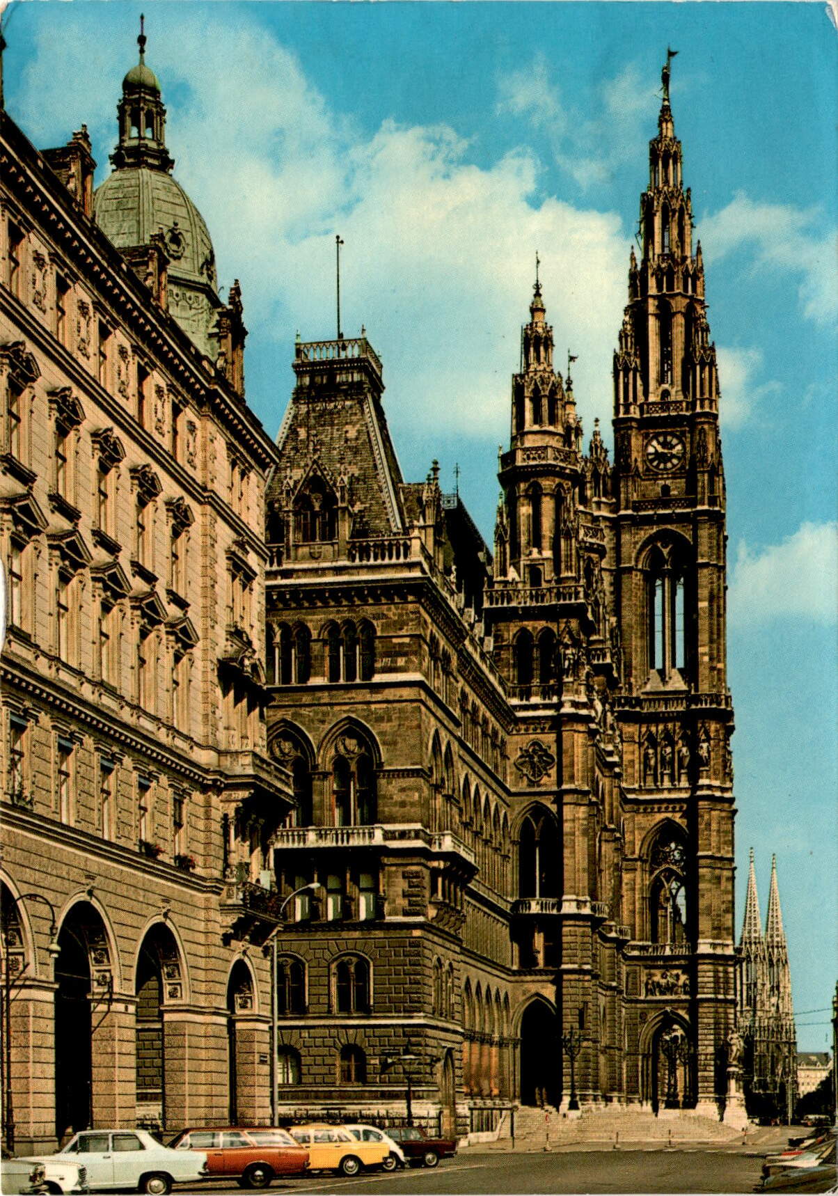 Back of PostcardThe postcard showcases the iconic Vienna Town Hall, a neo-gothic building with cultural and historical significance. The mention of the city as the city of Waltz highlights its musical heritage. The postcard also mentions a bustling district with shops and a pleasant walking area, showcasing the vibrant social life of the city. The language barrier and currency differences are noted, emphasizing the diverse cultural experience of visiting Vienna. The postcard is addressed to an avid postcard collector, indicating the value placed on preserving and sharing cultural artifacts. Overall, the postcard captures the essence of Vienna as a city rich in history, culture, and social interactions.