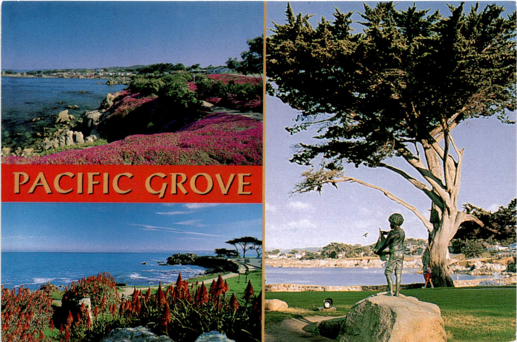 This charming coastal town is a hidden gem on the Pacific coast, known for its stunning views and quaint atmosphere. The photos on this postcard, taken by Michael F. Millay and Ken Glaser Jr., capture the beauty of Pacific Grove perfectly.