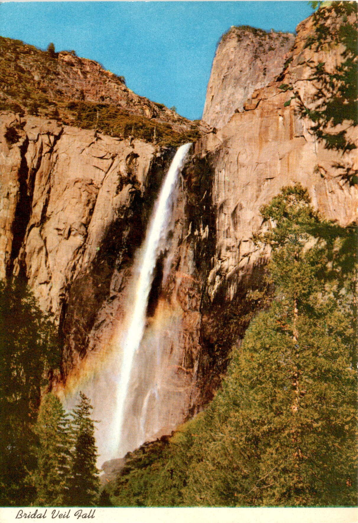 Capture the beauty of Bridal Veil Fall with a color photo by Robt. C. Clemenz, showcasing the stunning natural landscape of Yosemite National Park. This postcard is a perfect memento of your visit to this iconic waterfall.