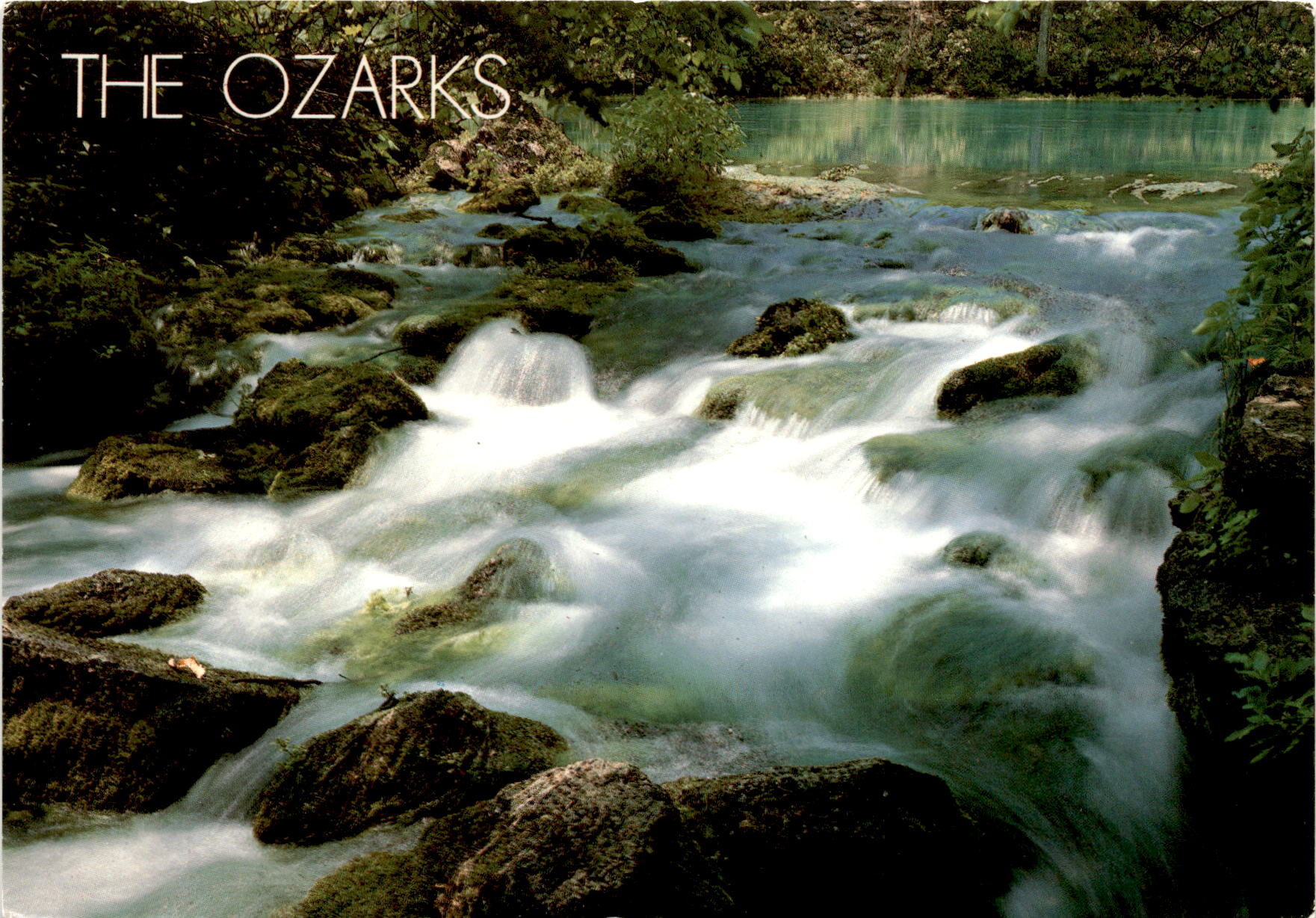 Welcome to the Ozarks! This postcard showcases the stunning natural landscapes of Northern Arkansas and Southern Missouri, featuring beautiful forests, lakes, streams, and over 10,000 springs. With more than 2,000 caves formed by underground streams, this region is a paradise for nature lovers and outdoor enthusiasts.