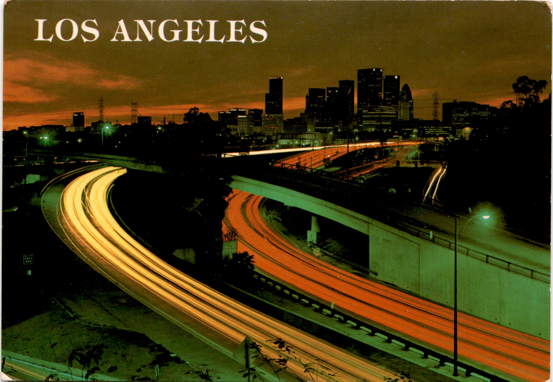 Iconic Los Angeles skyline postcard, perfect memento.! postcard