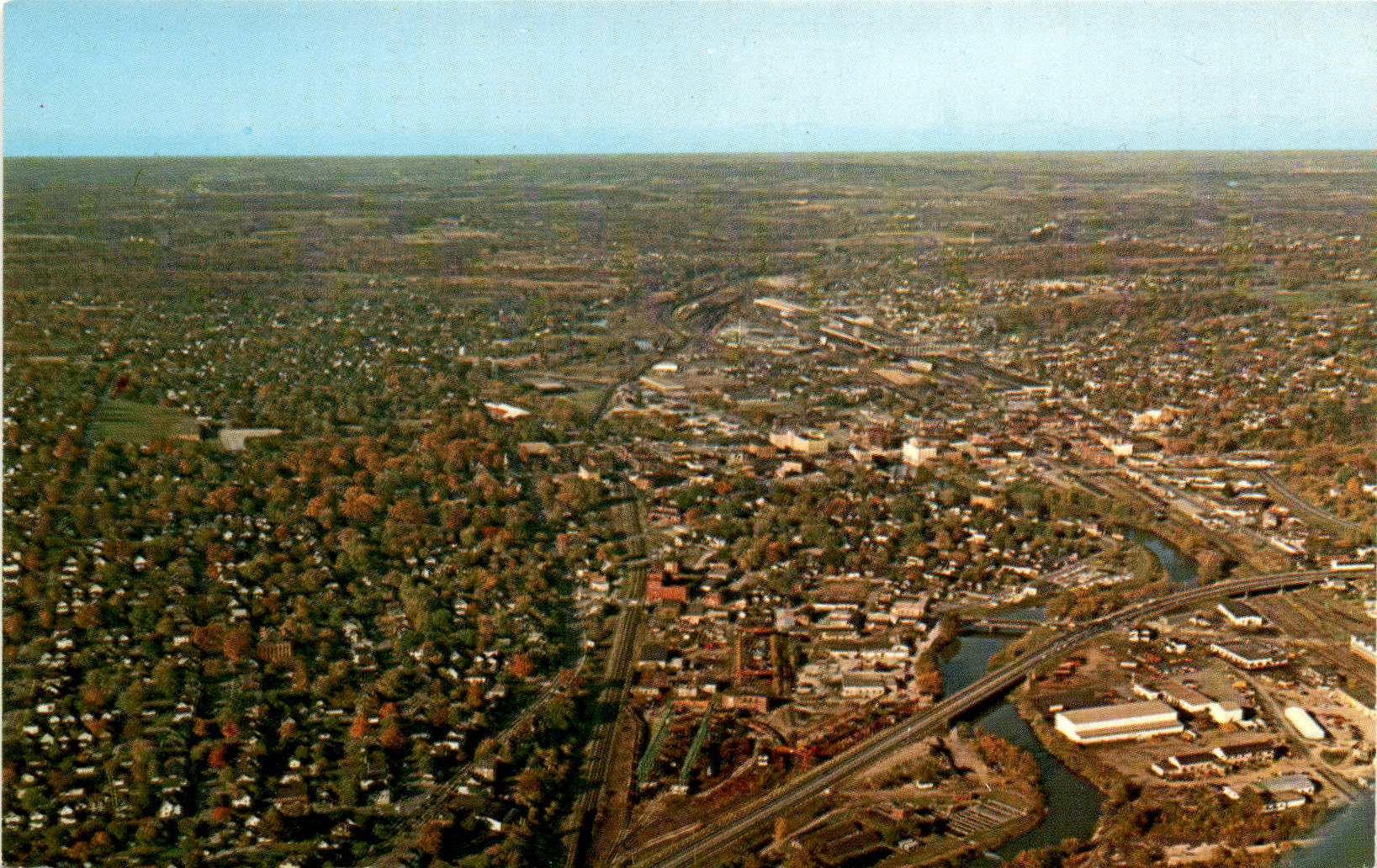 The aerial view of Sharon showcases its vibrant cityscape, with U.S. Route 62 and State Route 18 running through the town. The photo, captured by Richard C. Miller, highlights the industrial nature of Sharon and its importance in the local economy.