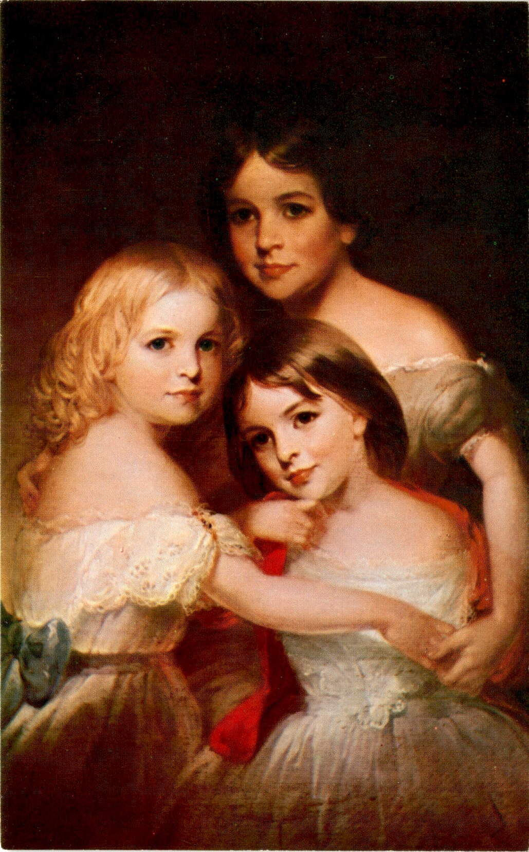 The painting, created in 1859 by artist Thomas Buchanan Read, captures a moment in time. In the lamplight, I see Grave Alice, with a solemn expression, descending the broad hall stair. Beside her is laughing Allegra, her joyous spirit evident even in a still image. And then there is Edith, with her golden hair shining brightly.