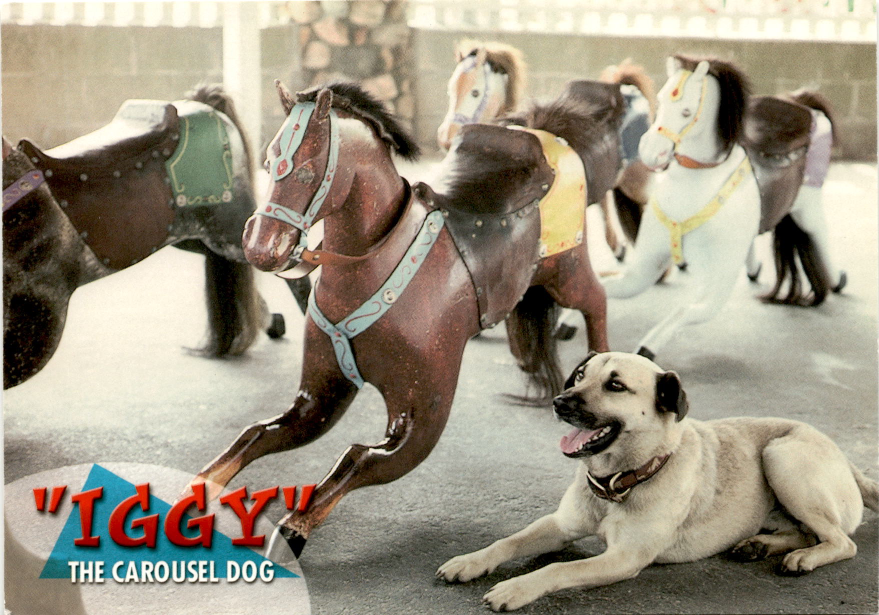 In this charming photo captured by Bernard Ludwig Gordon, Iggy is seen resting beside his favorite wooden steed at the carousel. The image truly captures the nostalgia and magic of this historic attraction.