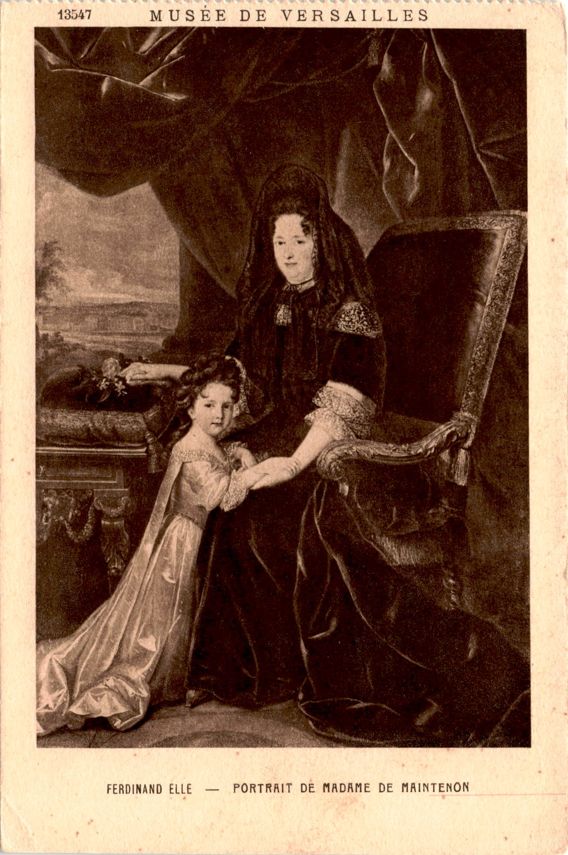 During my recent visit to the Musee de Versailles, I had the pleasure of viewing the stunning portrait of Madame de Maintenon by Ferdinand Elle. The portrait, printed by Braun & Cie. Imp. Édit. Paris, captures the elegance and grace of Madame de Maintenon, a prominent figure in French history.