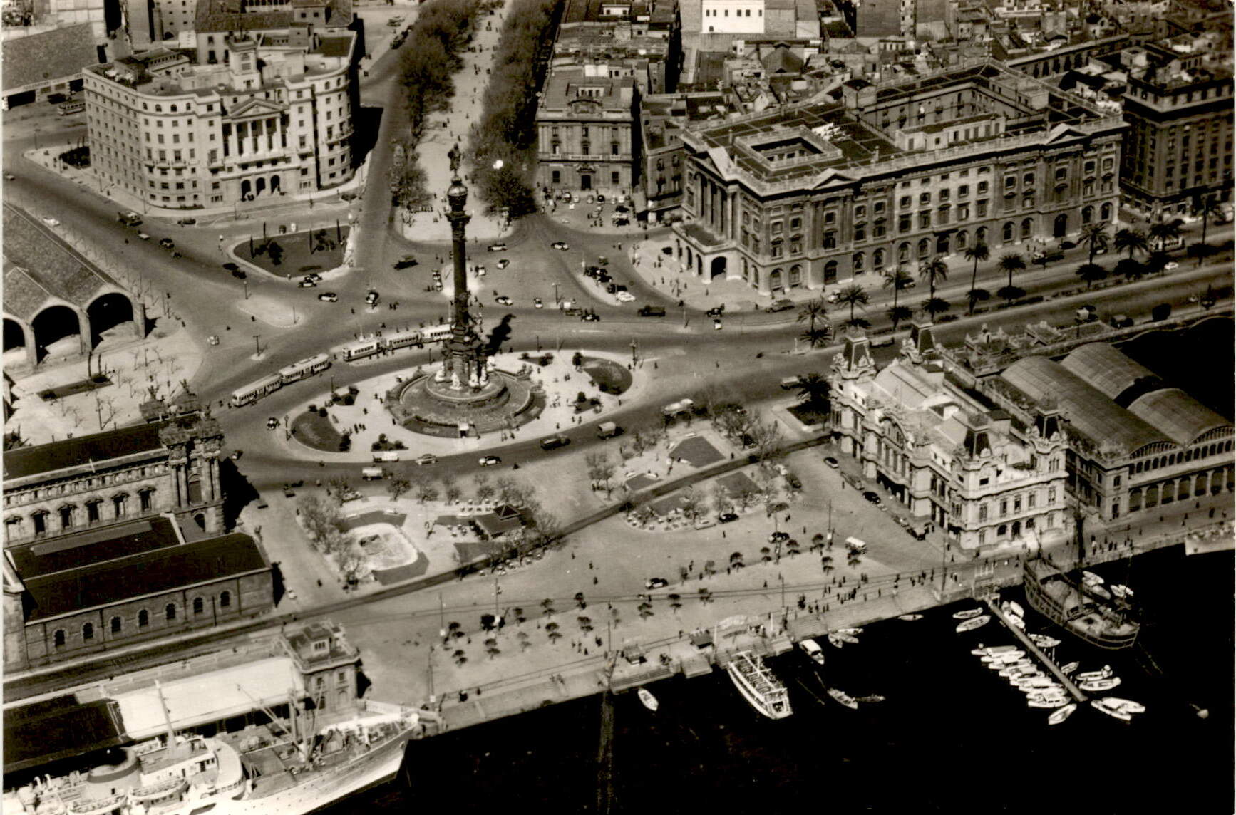 Vintage Barcelona Aerial View Peace Door Columbus Monument RPPC!