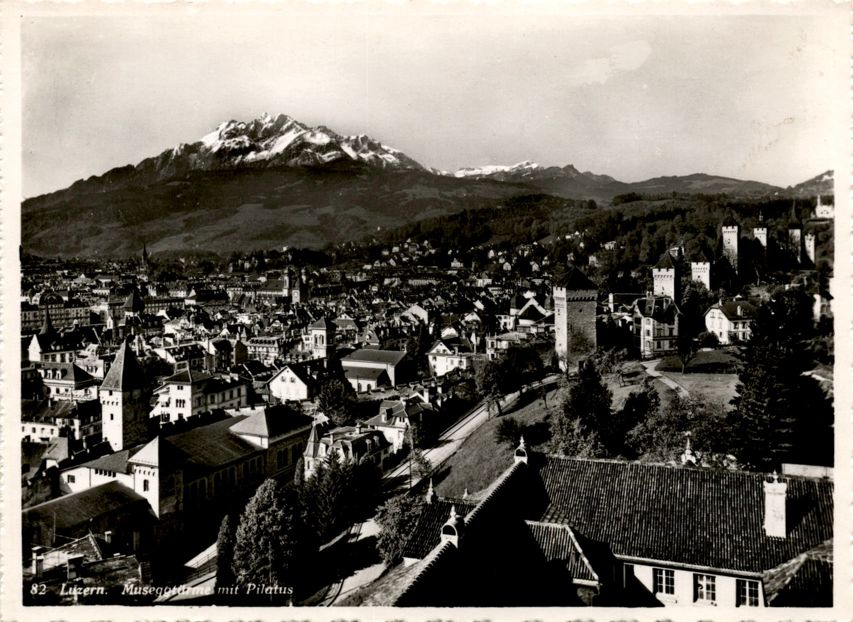 POP H 82 Luzern Musegoterme mit Pilatus FFFL errrer E LUZERN Museggtürme mit Pilatus 217 Léon Nordmann u. Co. Luzern Fabrication Suisse