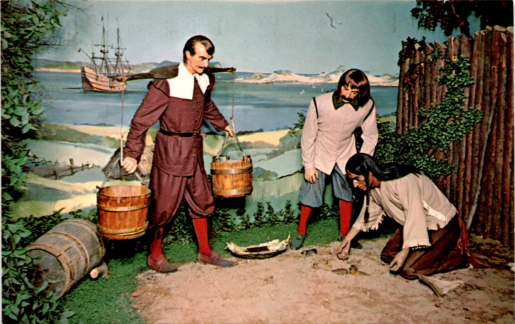 This postcard is a reminder of the important role that Squanto played in the early days of Plymouth Colony. His teachings and guidance were instrumental in helping the Pilgrims establish themselves in the New World. Next time you’re in Plymouth, be sure to visit the Plymouth National Wax Museum to learn more about this fascinating period in American history.