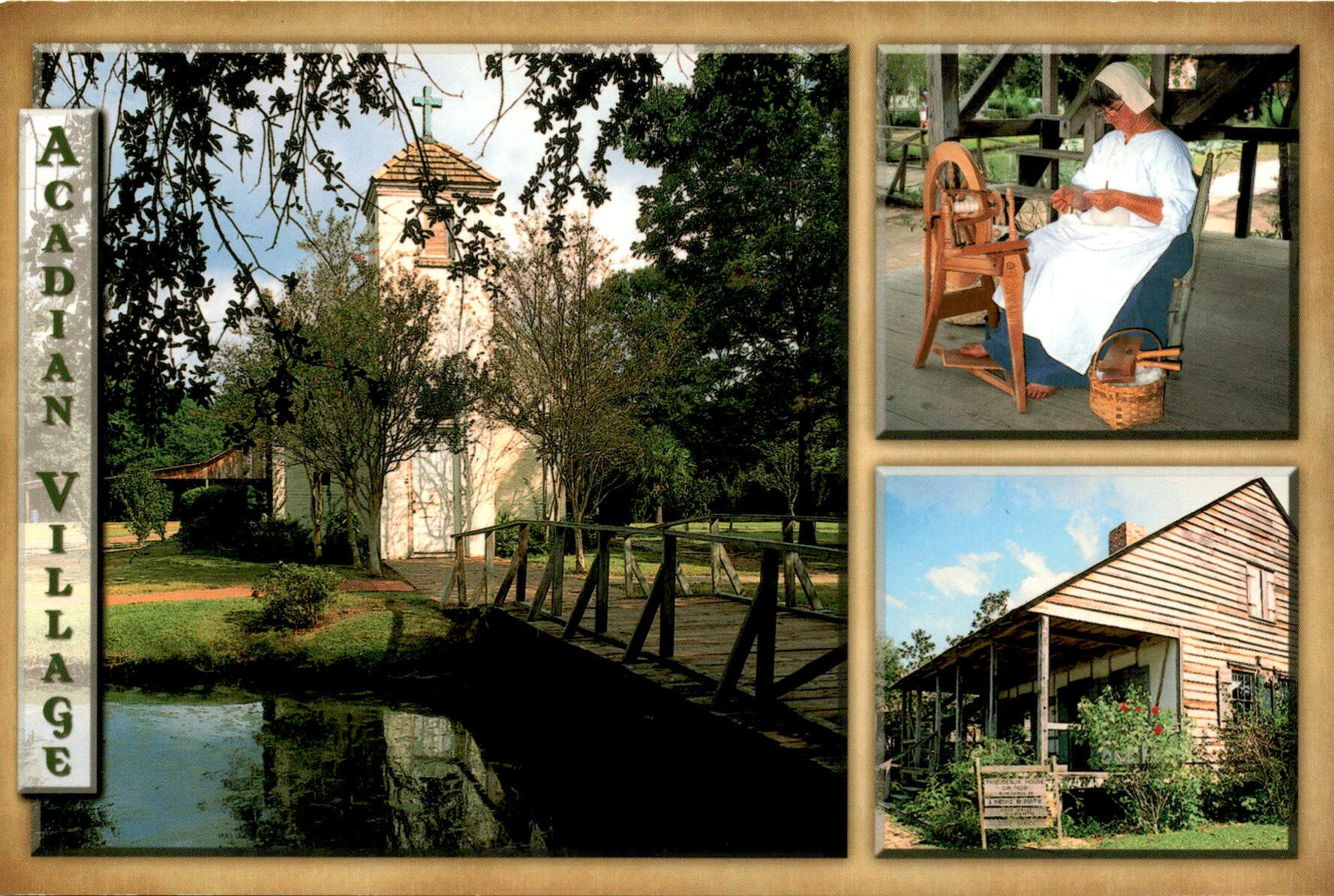 The photos on this postcard were taken by Bob and Tommie Reardon, capturing the beauty and authenticity of Acadian Village. The attention to detail in the woman’s dress and the historic Thibodeaux house truly transport you back in time to the early days of Acadian settlement in Louisiana.