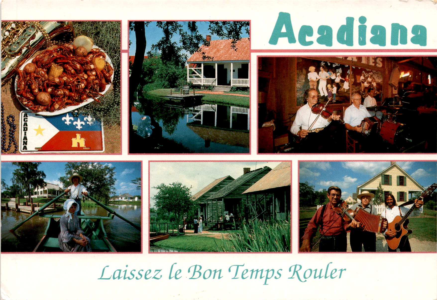 Laissez le Bon Temps Rouler! This famous Cajun saying translates to “Let the good times roll,” and that’s exactly what you’ll experience in Acadiana. This postcard captures the essence of this unique region in America, where the Acadian people have preserved their own heritage and culture that is distinct from the rest of the country.