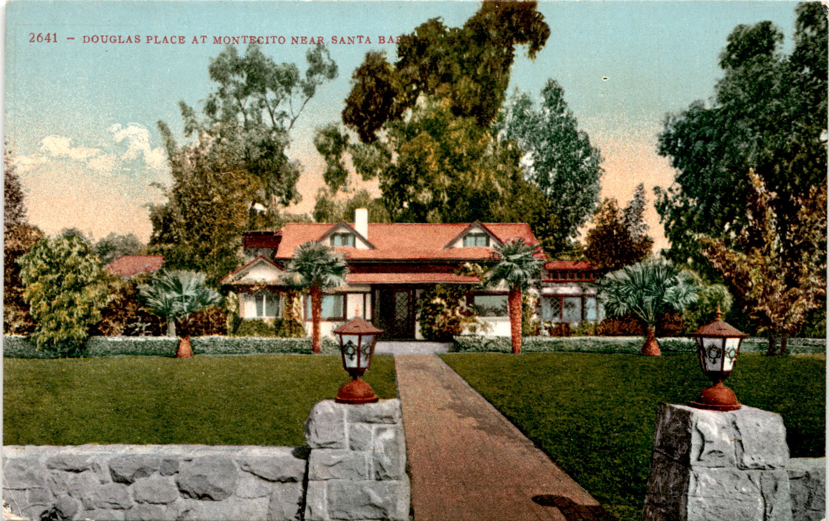 The front of the postcard features a lovely image of Douglas Place at Montecito, giving a glimpse of the picturesque surroundings. The back of the postcard has designated spaces for both correspondence and address, making it easy to send a message to a loved one or friend.