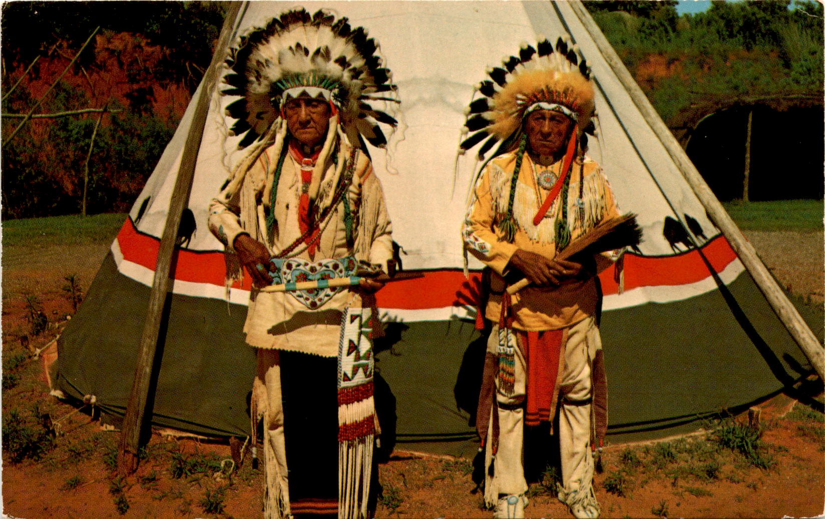 As you admire this colorful photo, you can’t help but feel a sense of awe and respect for these Kiowa chiefs, who continue to uphold their tribe’s customs and beliefs. The scenic beauty of Indian City, U.S.A., serves as the perfect backdrop for this powerful image.