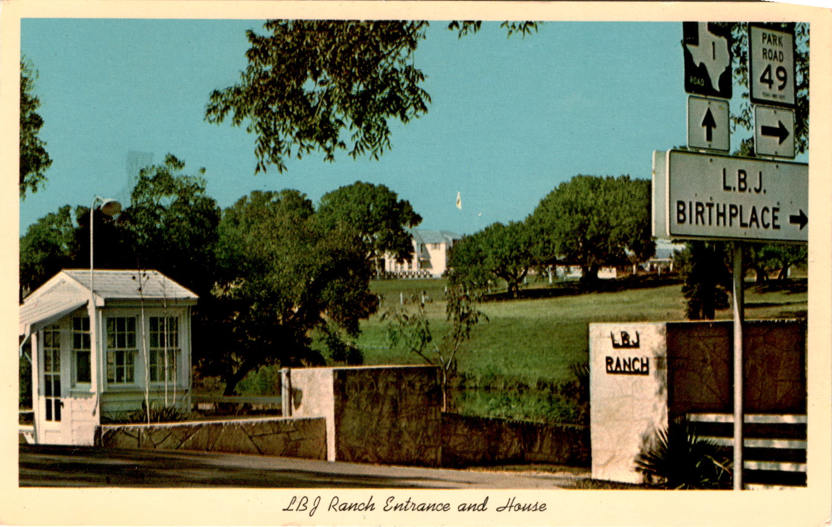 Welcome to the LBJ Ranch! This postcard captures a glimpse of the entrance and house at the famous LBJ Ranch, located in Stonewall, Texas. The ranch, once owned by President Lyndon B. Johnson, is a historic landmark that offers visitors a look into the life of one of America’s most influential leaders.