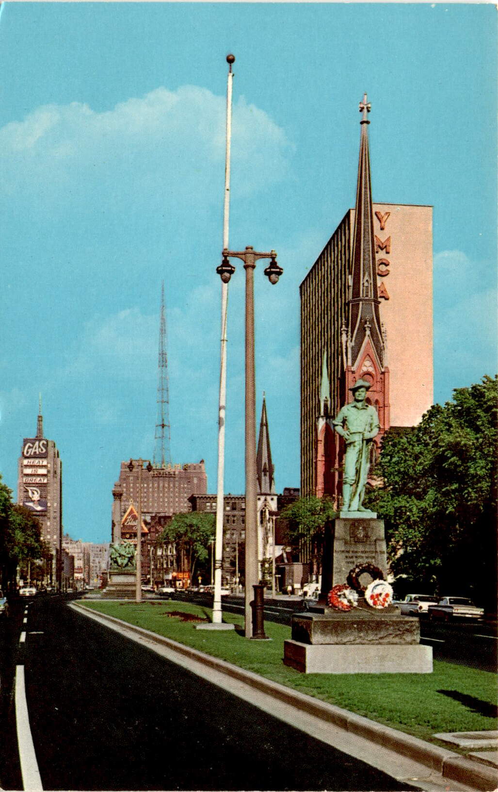 Milwaukee is known for its rich history and vibrant culture, and this postcard is a perfect representation of that. The Spanish American War Memorial stands tall, paying tribute to those who fought bravely in the war. The new YMCA Building adds a modern touch to the skyline, blending seamlessly with the historical monument.