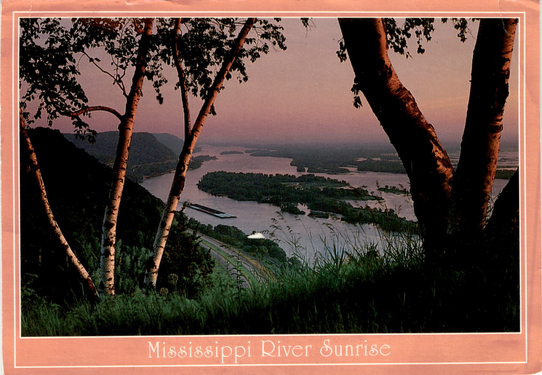 The postcard you sent me of the Mississippi River Sunrise was absolutely stunning! I can’t believe I waited this long to write back, but life on the dairy farm with my husband and four kids keeps me very busy from spring through fall. I would love to trade some old cards with you – I enjoy all old greeting cards, especially ones that are colorful and pretty. Your postcard has inspired me to start collecting more beautiful cards like this one. Thank you for brightening my day with your thoughtful gesture. Looking forward to hearing from you soon!