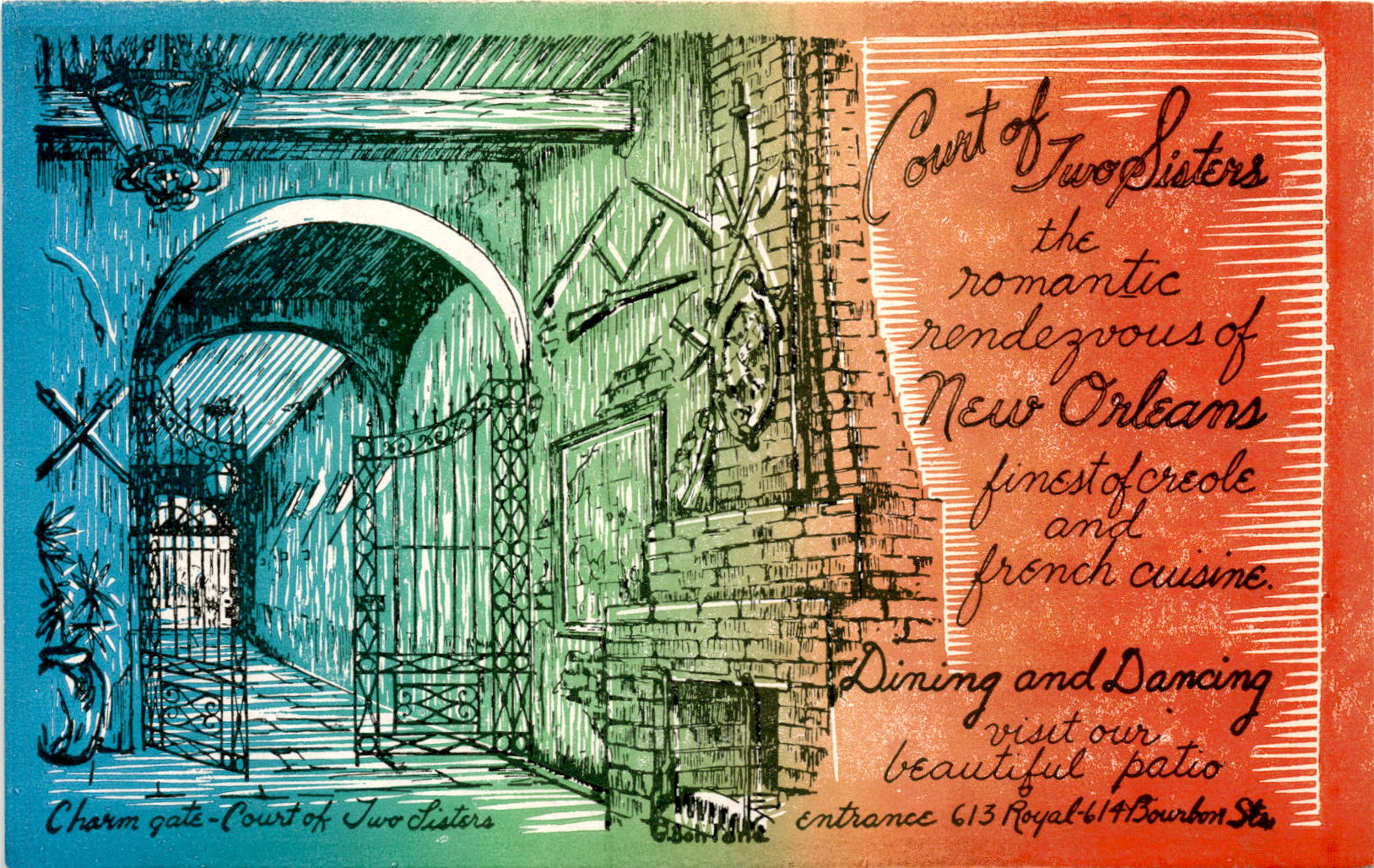 New Orleans, Court of Two Sisters, Creole French cuisine, romantic, his postcard