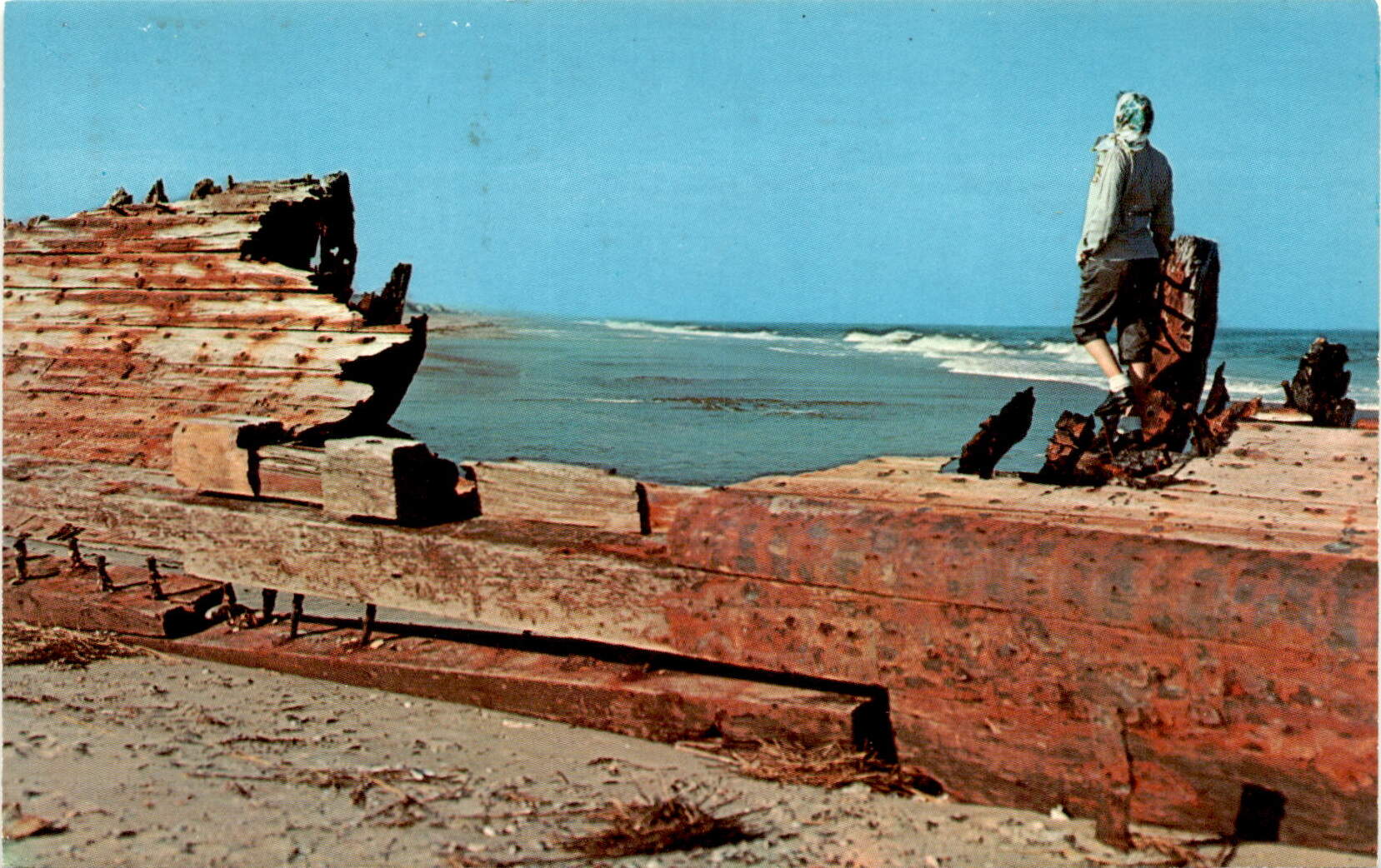 Exploring the Outer Banks of North Carolina is like stepping back in time to an era when sailing ships ruled the seas. The wreck of the 4 masted schooner, Laura A. Barnes, is a fascinating attraction within the National Seashore Park near the Bodie Island recreational area. This postcard captures the essence of a bygone era when gallant sailing ships defied the winds and waves of the mighty Atlantic.