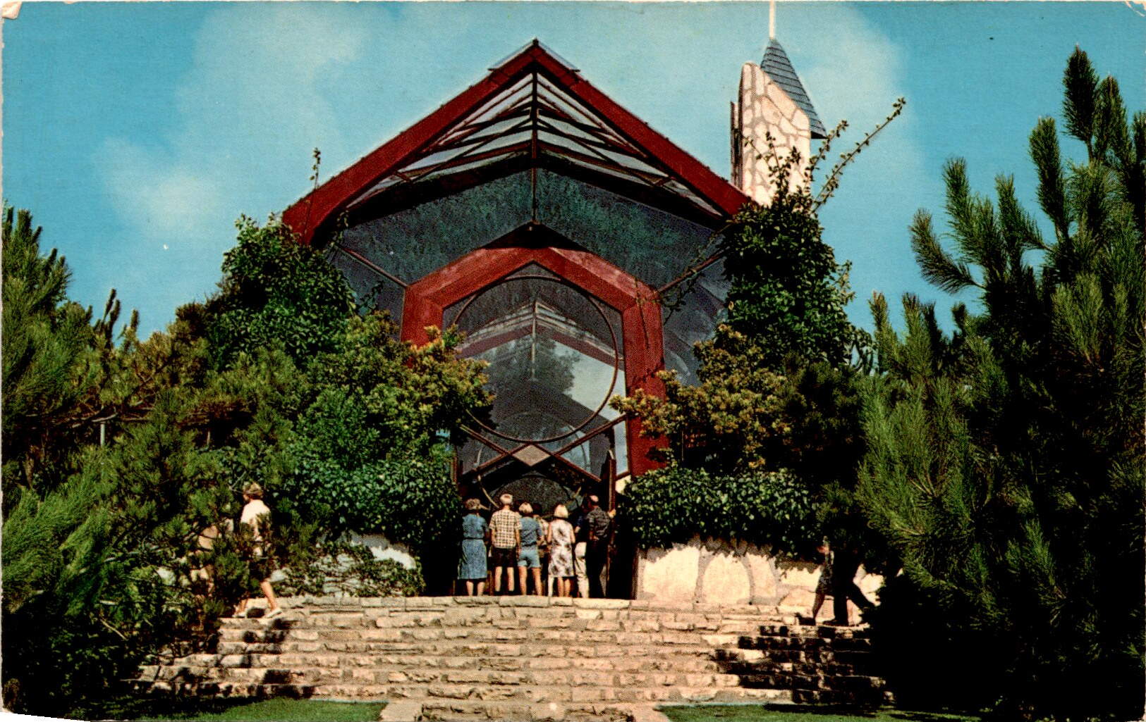 As you can see in the photo on this postcard, people from all walks of life come to Wayfarer’s Chapel to seek solace, inspiration, and connection. The serene surroundings and breathtaking architecture make it a truly special place for reflection and spiritual growth.