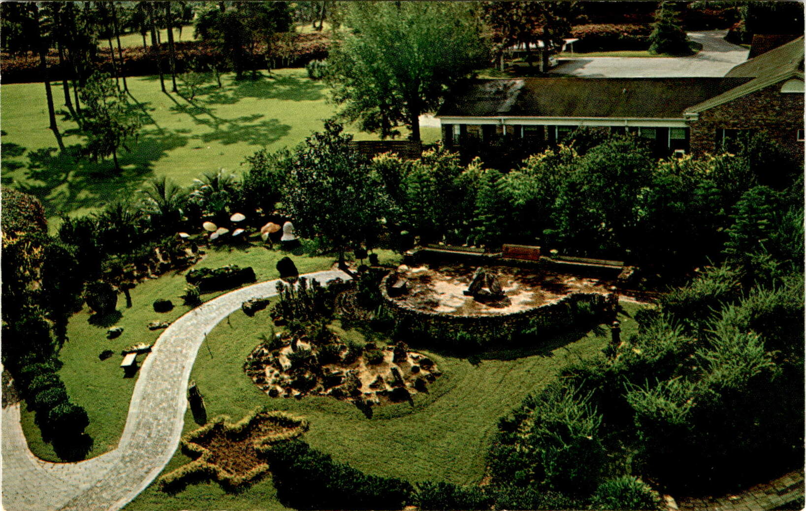 Back of PostcardThe postcard features the Gardens of the World at Florida Cypress Gardens, specifically highlighting the His and Her Blarney Stones. The postcard is a Curteichcolor 3-D natural color reproduction.
