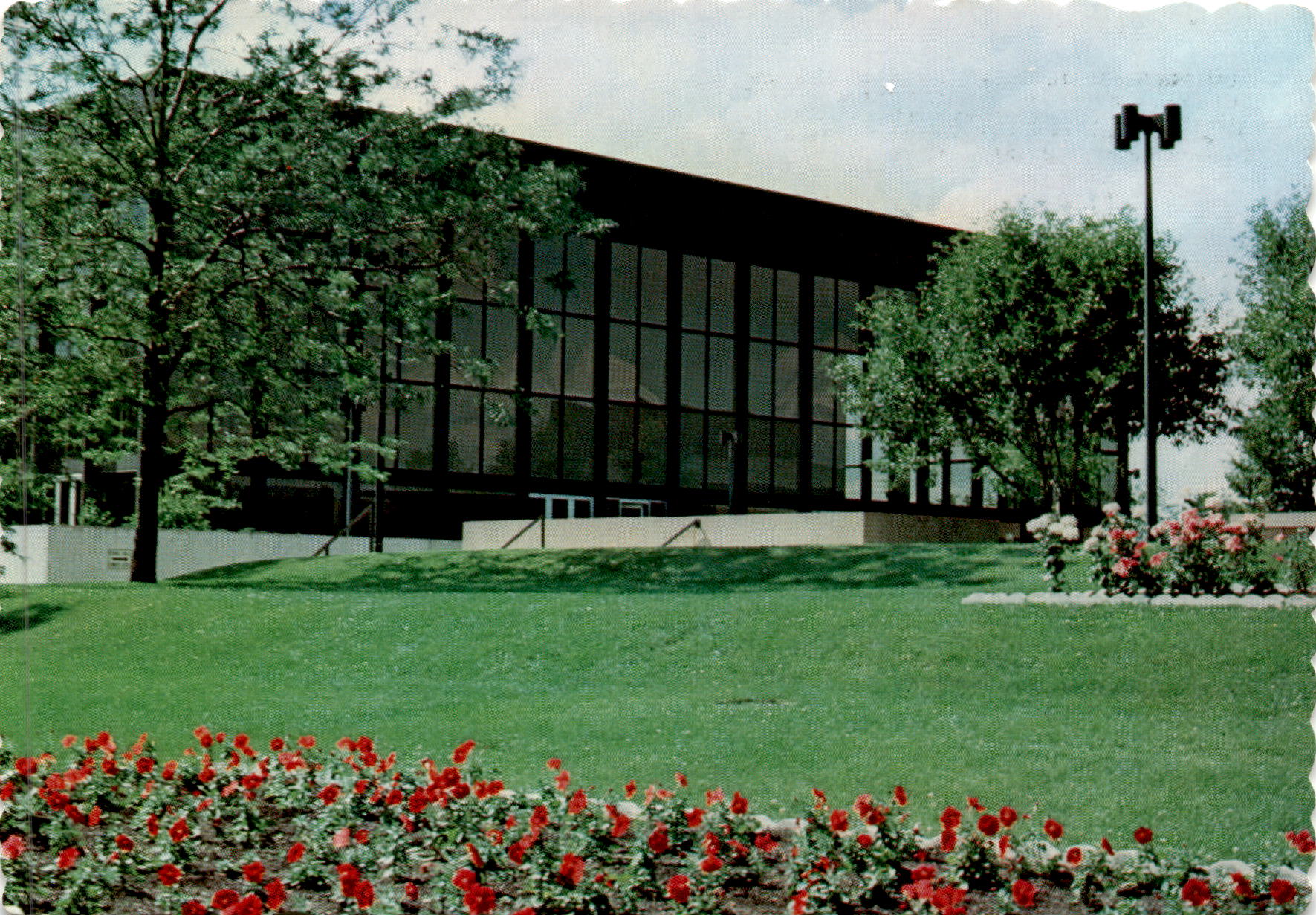 Back of PostcardThe postcard features the Hemmens Memorial Building in Elgin, Illinois, located on the east bank of the Fox River. It is part of the Civic Center complex in downtown Elgin and is known for its excellent auditorium that hosts name entertainment and exhibits regularly. The postcard is published by Profile Publications, Inc. and sponsored by the Altrusa Club of Elgin.